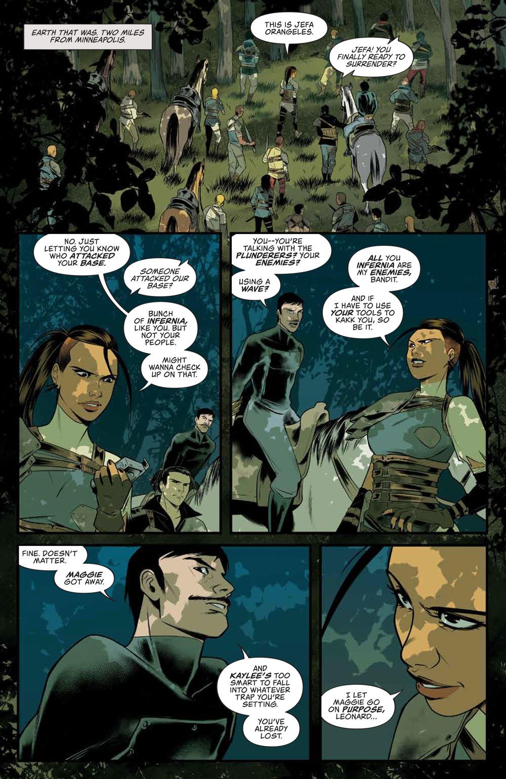 What happens when your worst enemy becomes your only ally? With her sights set on freeing Leonard, Kaylee's team chases the Jefa across the Earth That Was only to be led directly into a trap. But everything changes when they get attacked by plunderer robos who have been tracking both groups... to exterminate them all. Now, Kaylee must team up with the Jefa in order to fend off the robos. But if they survive this, how will they survive each other?