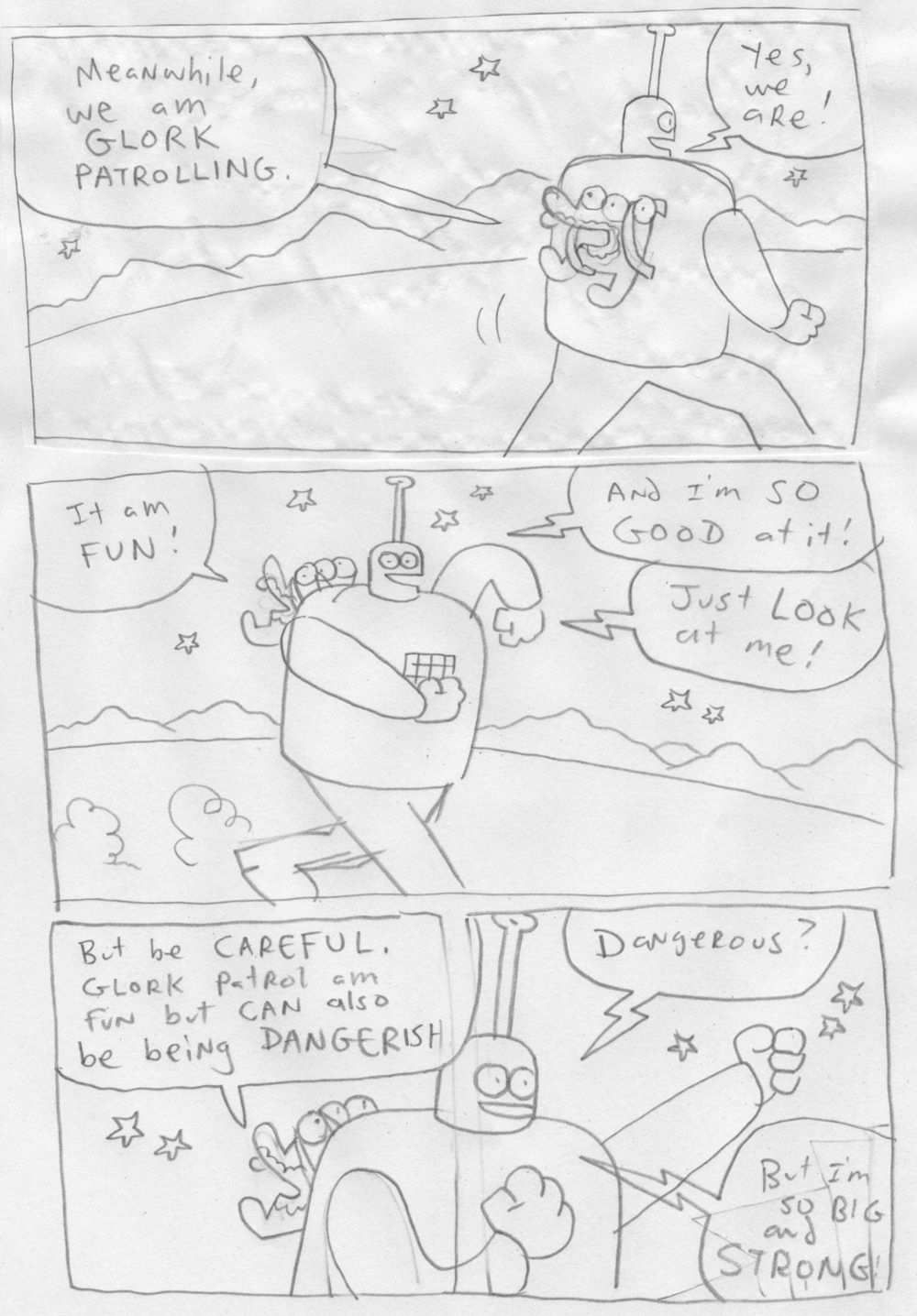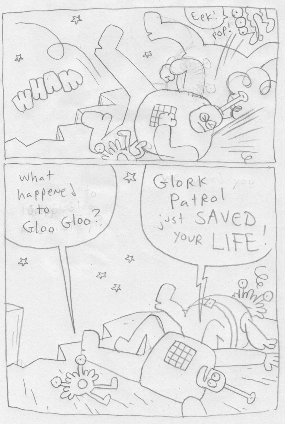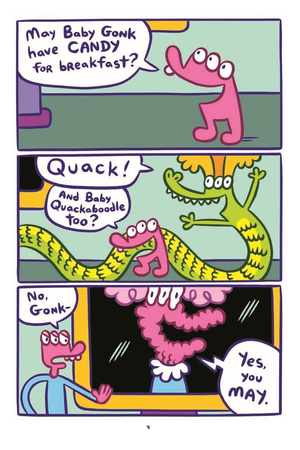 What a mess! It all started when Glorkian SuperGrandma told the Glork Patrol they could eat candy for breakfast... now their "Dada," the Glorkian Warrior, has a lot of cleaning up to do. Super Backpack gets a robot super-suit made of candy wrappers and takes Baby Gonk on the adventure of a lifetime, while Glorkian Warrior stays behind and tries to help the uncontrollable Baby Quackaboodle take a bath.