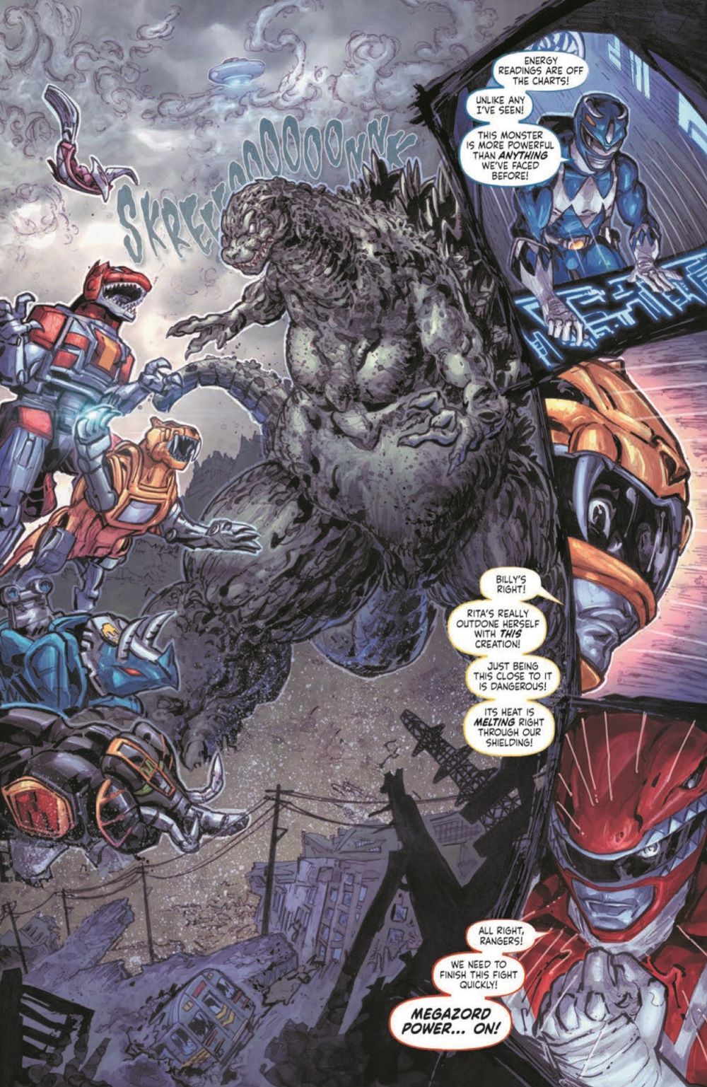 Godzilla battles the Megazord . . . and no matter who wins, the world will be at great peril from the combined threat of the Xilien invaders and Rita Repulsa! And if a giant robot and a giant monster weren't cataclysmic enough, how about Gigan-a cybernetic space monster ready to fight them both?