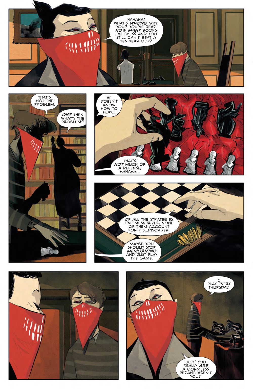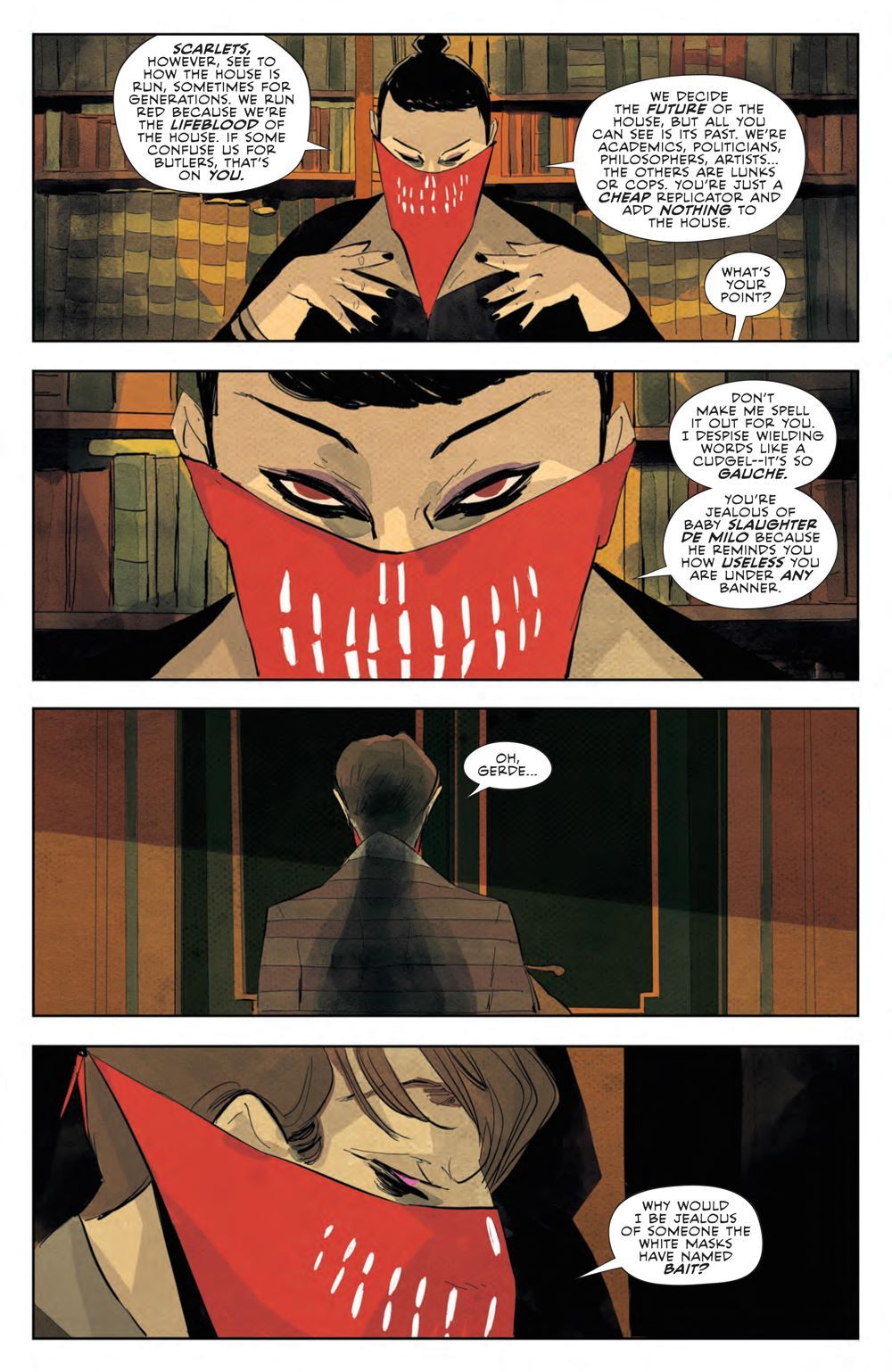 NEW CREATIVE TEAM. NEW STORY ARC. Edwin Slaughter is one of the Scarlet Masks, the secret bookkeepers of the Order of St. George. He's enamored with stories of ancient hunters, as well as those in his midst. He only gets to write the stories and never live them himself though. That is, until what starts out as standard reconnaissance for the Order turns Edwin's world upside down. There's a legendary monster in America, one long thought extinct… It's taken the lives of countless children, bringing Edwin into the field for the first time… and into real danger. Along with a new story arc comes a new creative team! Acclaimed writer Sam Johns of Punchline and The Joker fame joins James Tynion IV as co-writer, and up-and-coming artist Letizia Cadonici makes her highly-anticipated American comics debut, joined by series veteran Werther Dell'Edera as co-artist!