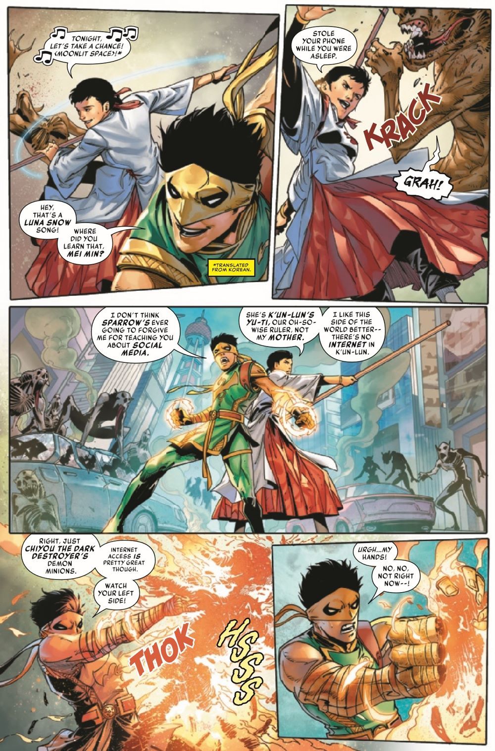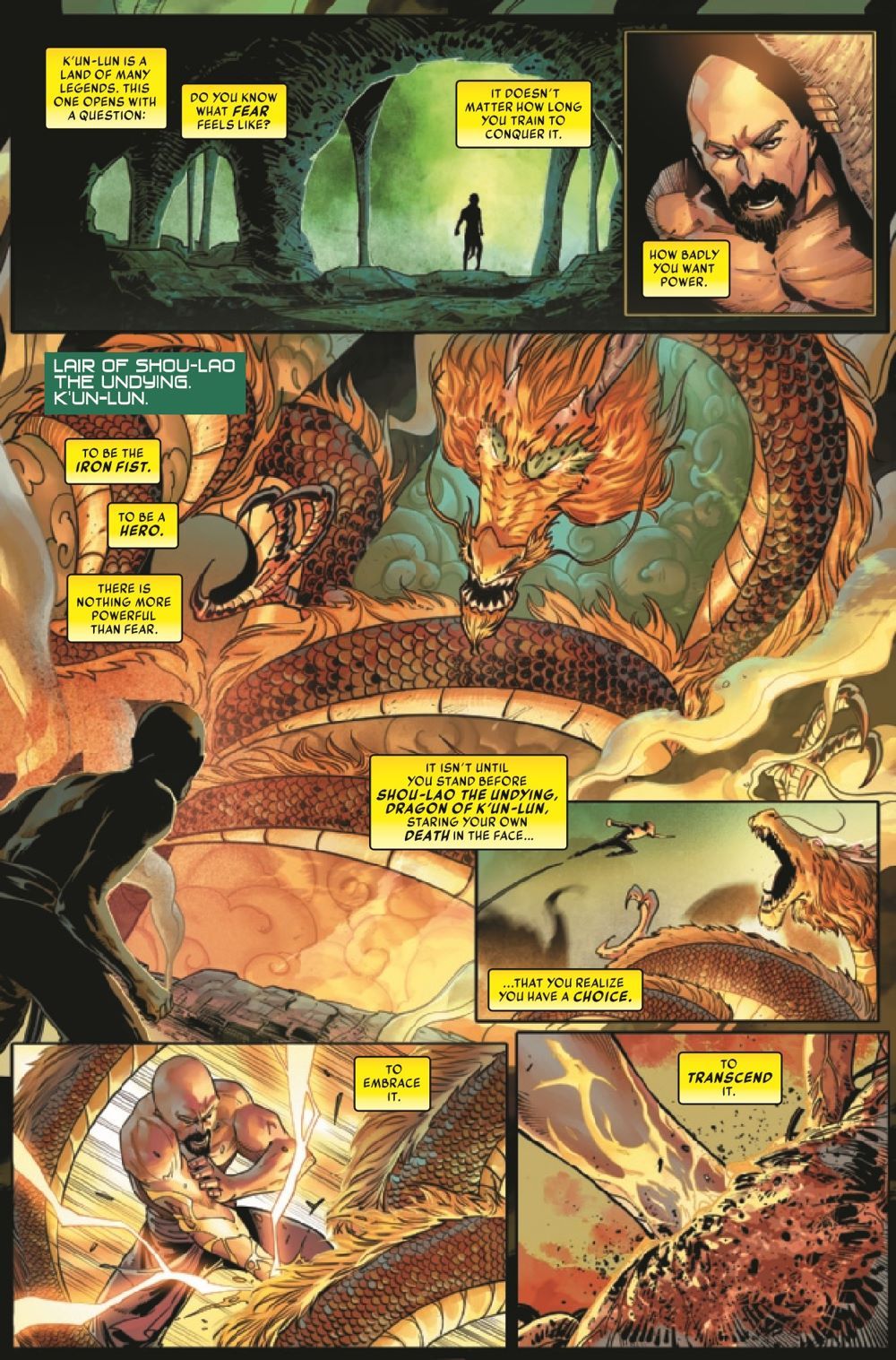 THE HUNT IS ON! As the NEW IRON FIST adjusts to his role, he struggles to handle the WARRING SOURCES of his power! Can he find balance before they consume him? The answers he seeks may lie at the heart of K'UN-LUN - with the PAST IRON FISTS! Meanwhile, DANNY RAND'S hunt for the Mysterious Iron Fist heats up! In order to catch him, Danny will have to cash in a favor...from an old friend!