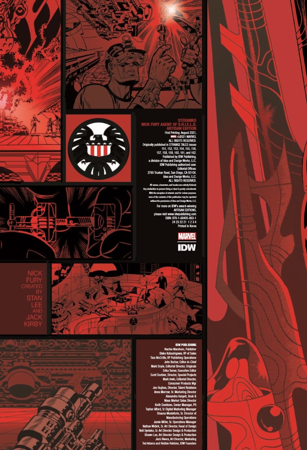 In the mid-1960s, Jim Steranko burst into the Marvel Age of comics in a BIG way, and the innovative, cinematic techniques he introduced in his brief tenure at The House of Ideas stand to this day as a high-water mark in the history of graphic storytelling. More than any other series, Steranko is most associated with Nick Fury: Agent of S.H.I.E.L.D. This Artist's Edition collects the first 12 stories of Steranko's run, from Strange Tales #151 — #162, as well as all his covers from these issues. Additionally, there will be a select number of extras presented. And, as usual, nearly all the pages have been scanned from the original art, from Steranko's private archives.