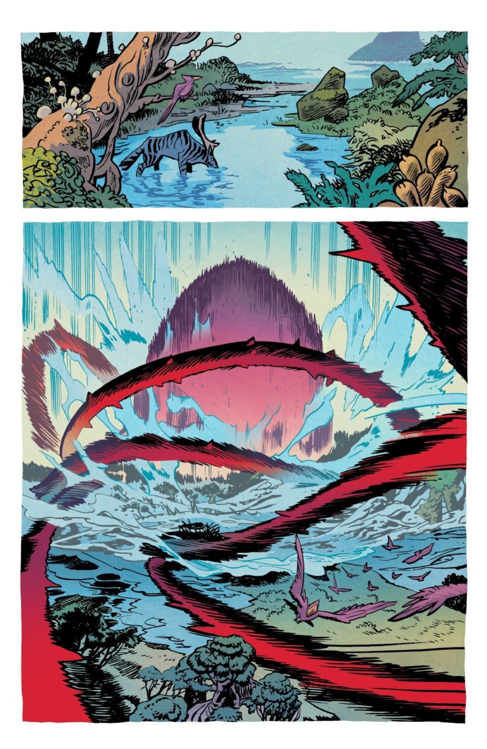 A new arc begins! After the incredible cliffhanger reveal from last issue, Rainbow and Jonna are reeling—what does it all mean?! The two sisters have come so very far in their search for their father, only to be met with lots of questions…and, as always, giant monsters! Can the girls escape the strange goopy tunnels they are in and find their dad? Plus: The secret origin of Gor and Nomi!