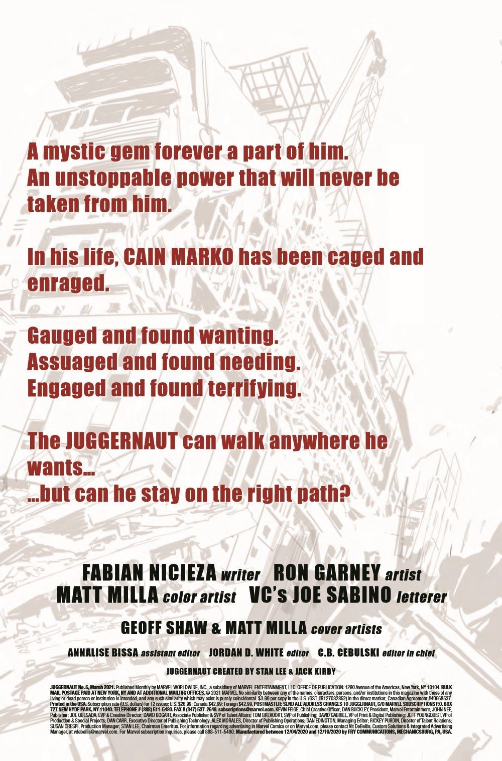 IT'S NOT THE END... HE'S UNSTOPPABLE! The JUGGERNAUT just keeps barreling down the path of righteousness - right into the hands of some very dangerous people. But the question is: for all his personal growth...can Cain Marko save anyone but himself?
