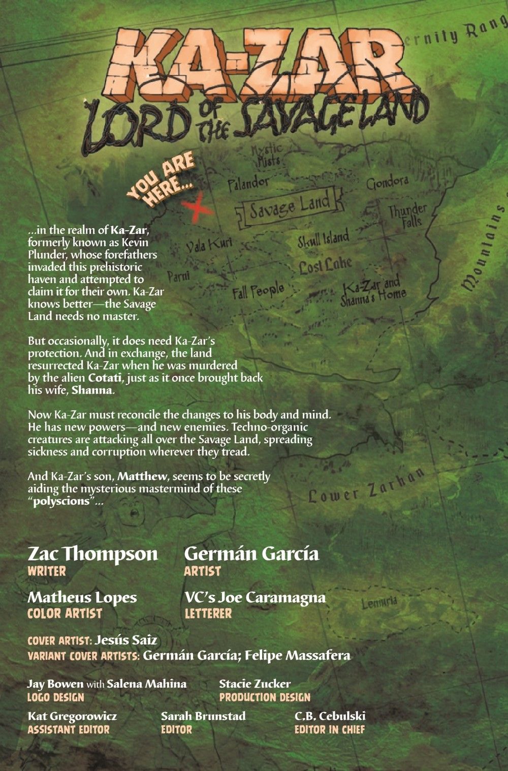 Change has come to the Savage Land! Ka-Zar and Shanna can feel it, as the Plunder Family travel in hopes of protecting their lands from a mysterious illness that plagues the forests. But will Ka-Zar be able to rise as champion of the Savage Land, or will his past be the downfall of the Savage Land and his family?