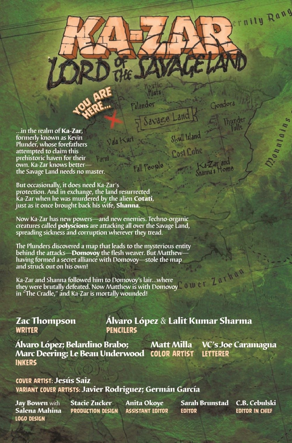 THE CHAMPION OF THE SAVAGE LAND IS NOT WHO YOU EXPECT! For years, Ka-Zar has thought himself the master of the Savage Land. Turns out he's only a tolerated guest…and not nearly as powerful as he believed. Domovoy's power grows as the land decays! When the Plunders discover the mysterious subterranean Cradle, they think they've found the answer. But what's born in the Cradle will bring only death…