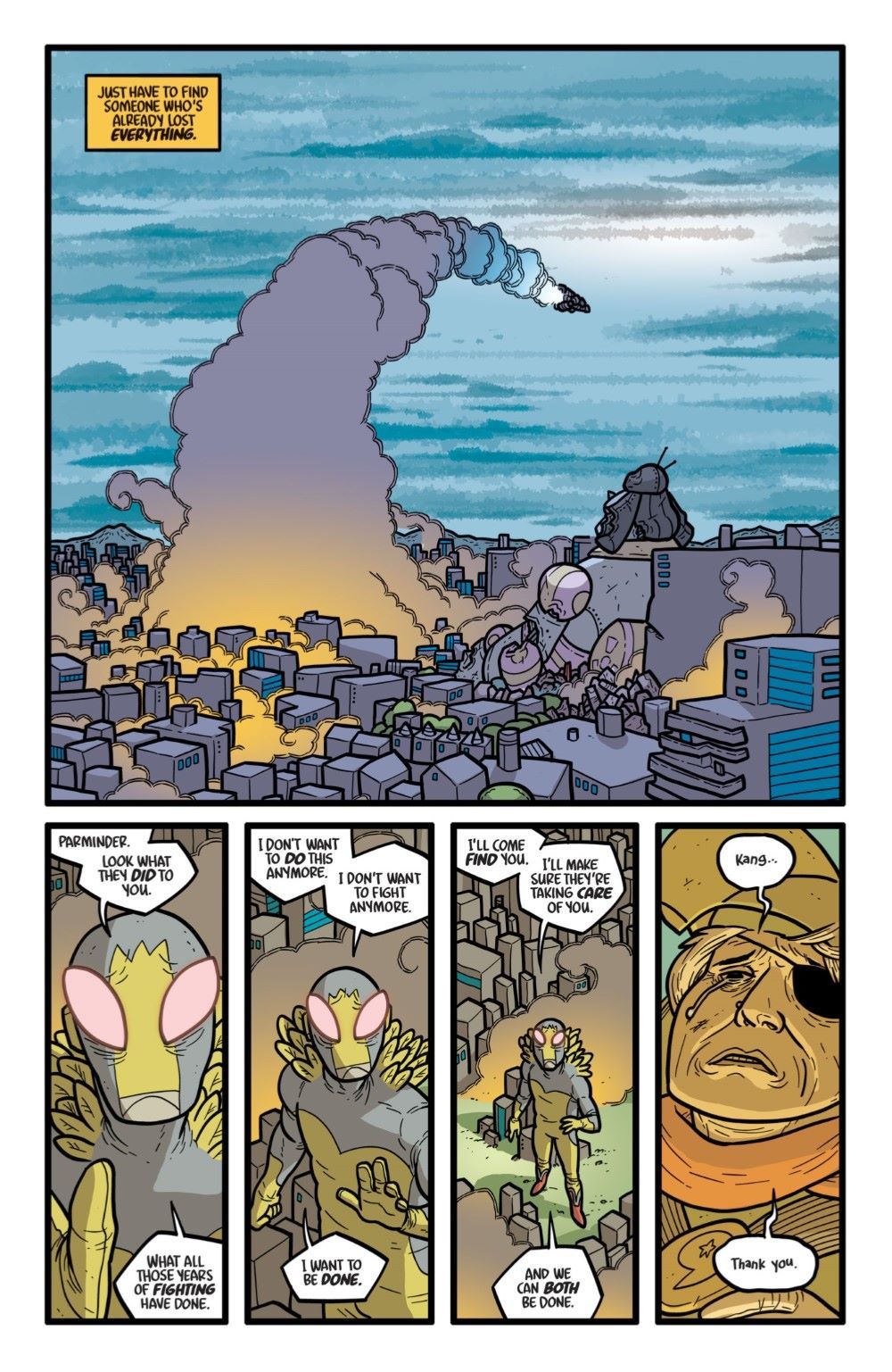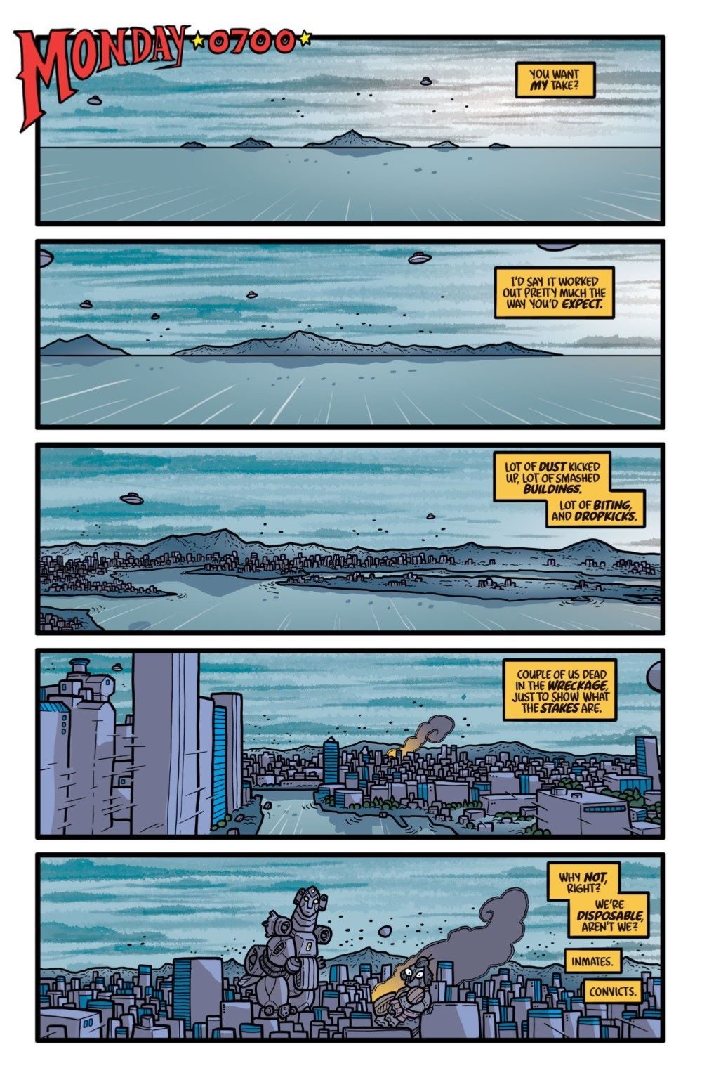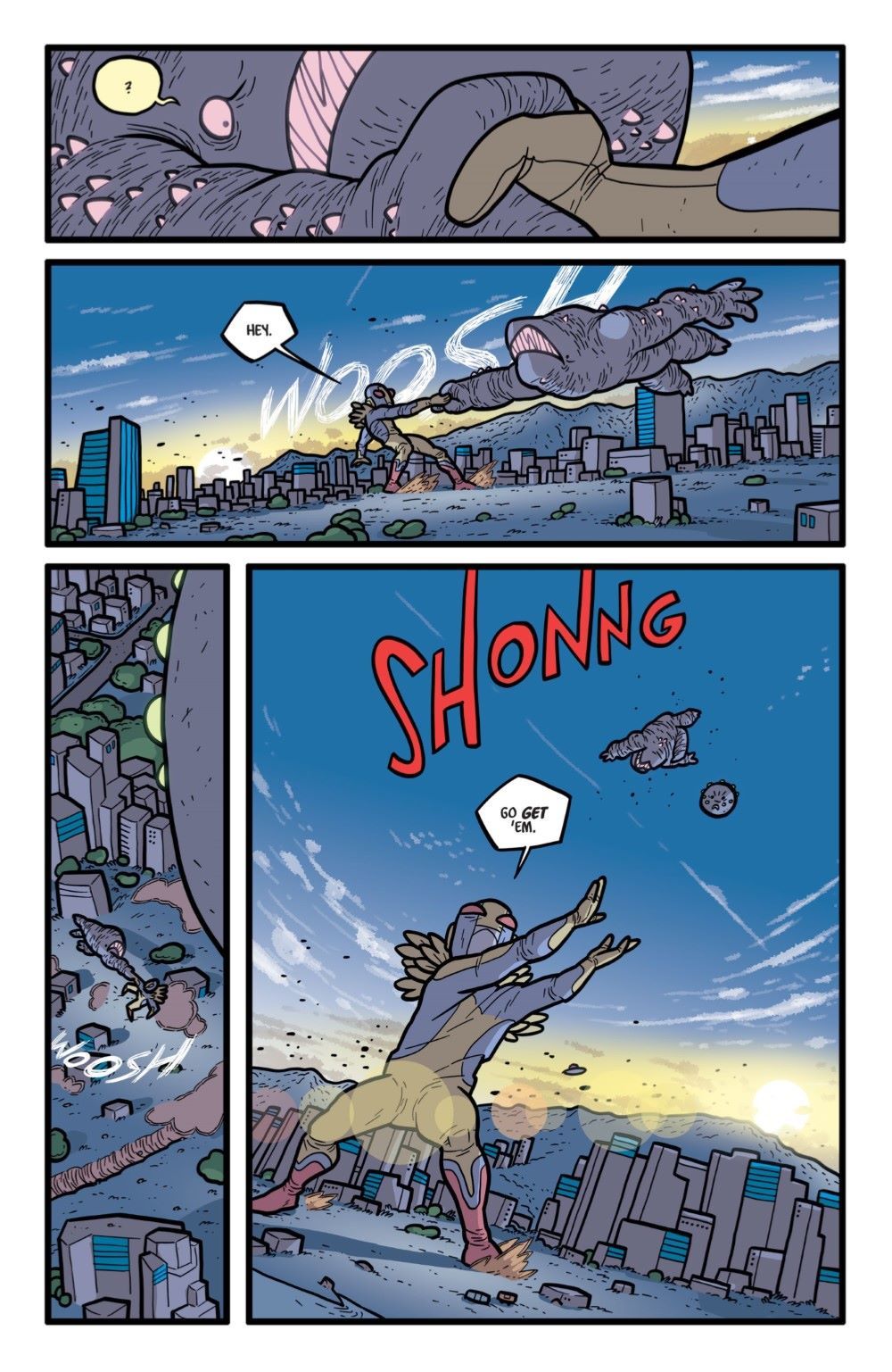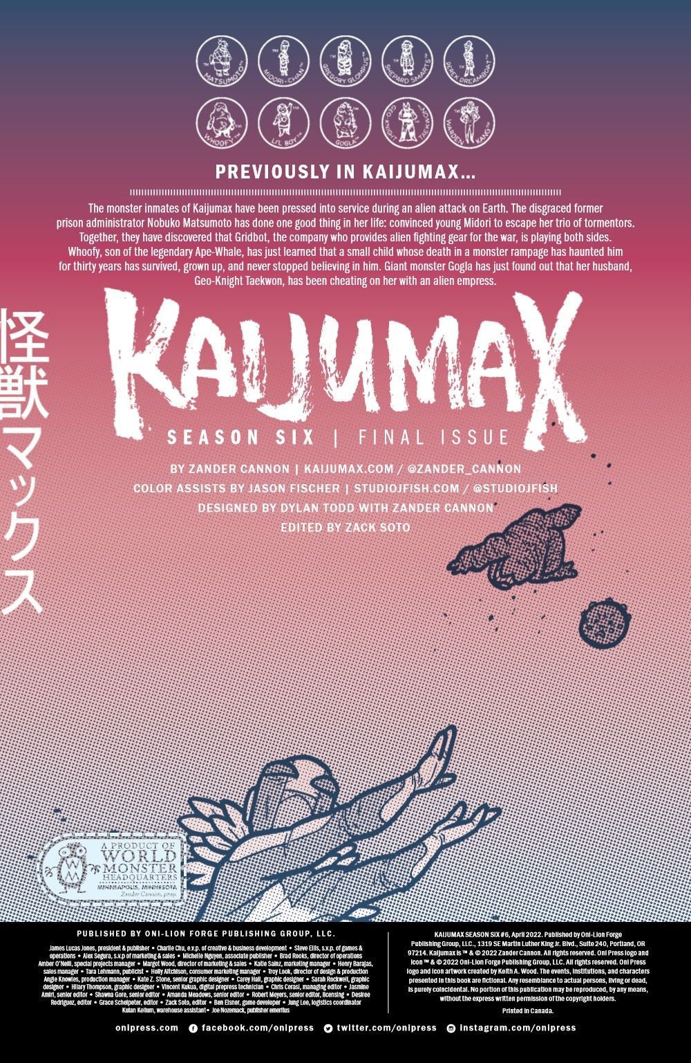 THE FINAL SEASON! THE FINAL ISSUE!! ?THE FINAL BATTLE!!! As the duplicitousness of the Earth government is laid bare, monsters, robots, aliens, space superheroes, and figments of the imagination all come together to even the scales and clean up the mess. Join your old friends Electrogor, Torgax, Whoofy, Jeong, Chisato, Gogla, Dokkeunbi, Daniel, Mechazon, Matsumoto, Go-Go Space Baby, and many more one last time as they sort their lives out from the wreckage. Also: Absurd assignments! Crushing counterattacks! And…the Protector of Pago Pago??