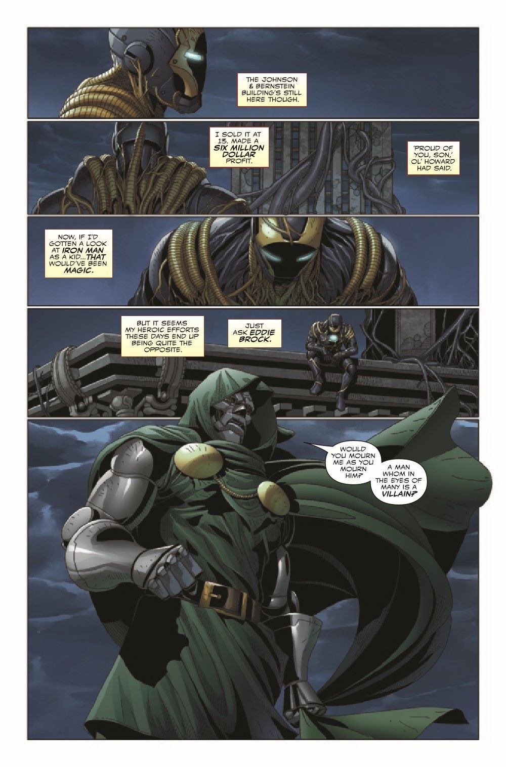 Iron Man has risked everything to save Eddie Brock, but now he's left with nothing but guilt. As longtime 'frenemy' Doctor Doom shows up with both counseling words and ulterior motives, they'lll be forced to battle an all-too-familiar specter of the holiday season-albeit one now twisted and controlled by the recent invasion of Earth by the symbiote homeworld. As Iron Man and Doom fight as temporary allies, their unexpected encounter both with each other and a horrifying inversion of yuletide joy may ultimately reveal to them the true meaning of Knull-mas.