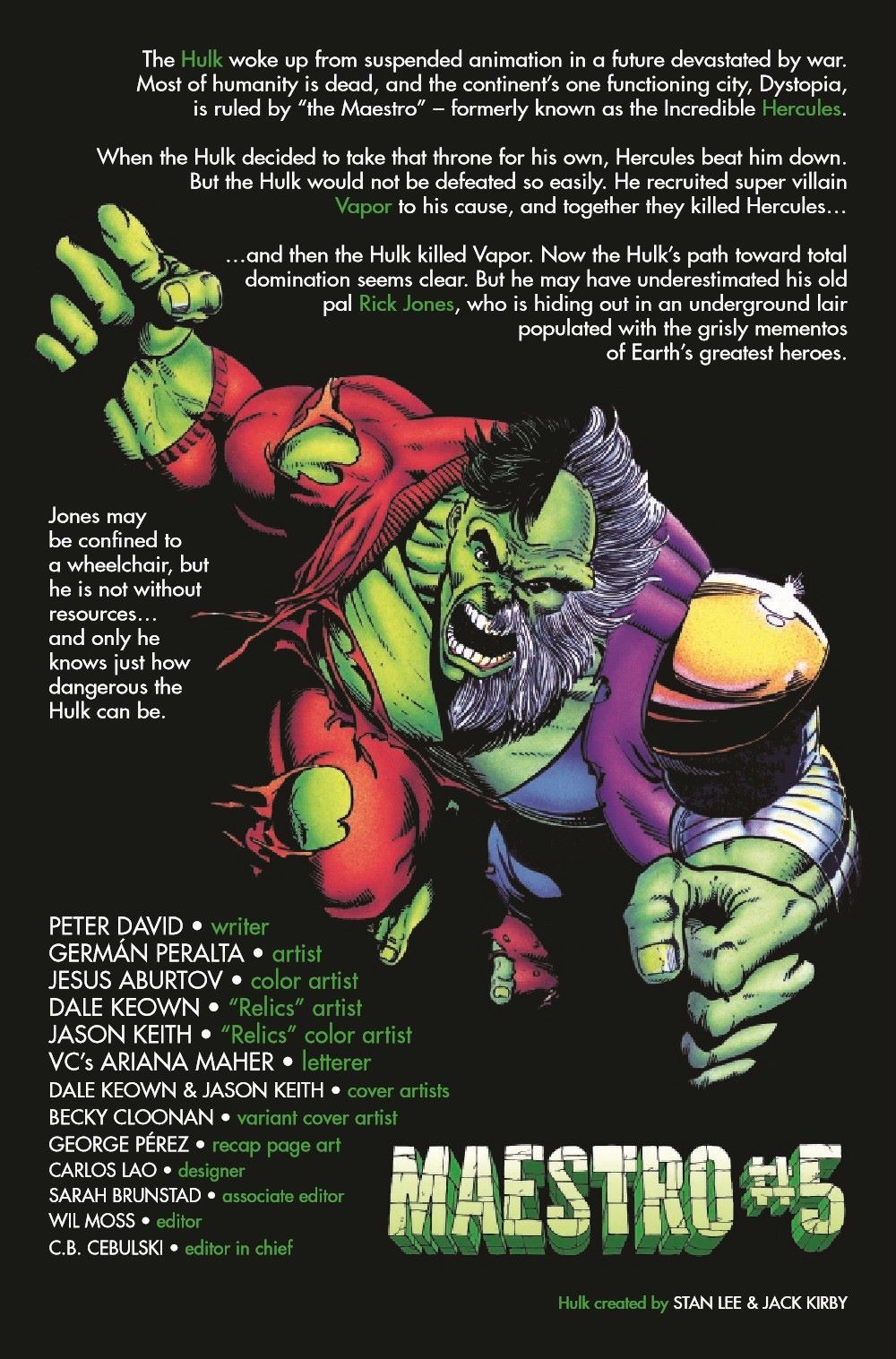 THE FINAL NOTE IN A SYMPHONY YEARS IN THE MAKING! The Hulk is dead - long live the Maestro! But this is no good night lullaby. It's nonstop action in Peter David fashion as the secrets behind Future Imperfect finally come to light!
