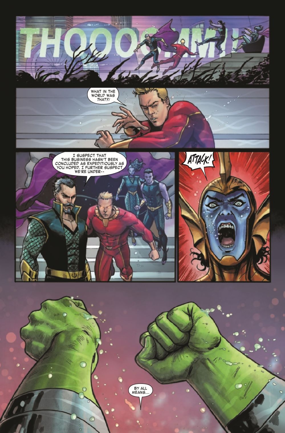 BATTLE AT PACIFICA! The Maestro is out for revenge against those who attacked him, which has led him straight to the bottom of the Pacific Ocean, right into the underwater city ruled by the Sub-Mariner, Namor! But the Maestro might be outmatched…or, more likely, out-limbed.