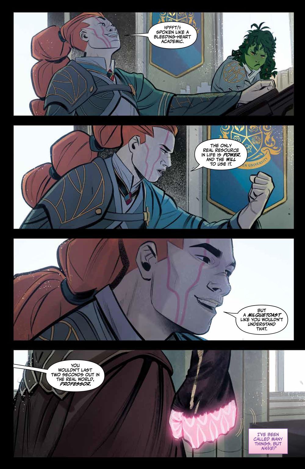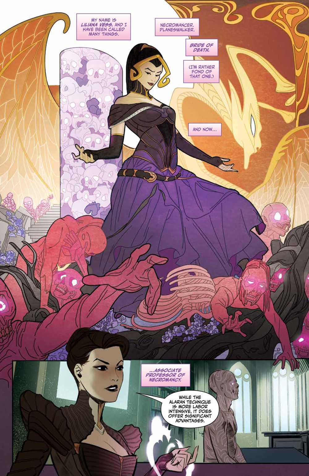 NEW SERIES. Delve even deeper into the Magic: The Gathering universe with comic and screenwriter Mairghread Scott (Transformers, Guardians of the Galaxy) and artist Fabiana Mascolo (Firefly: Brand New 'Verse)! While our heroes have many dangers to face throughout the multiverse, the powerful Necromancer Liliana Vess returns to her new home as a professor at the greatest college of magic in the Multiverse. But she doesn't return alone. Sensing the presence of a distant planeswalker calling for help... one with the power to save, or destroy, entire planes, puts her on a collision course with the diabolical machinations of the Tezzeret, the Master of Metal...