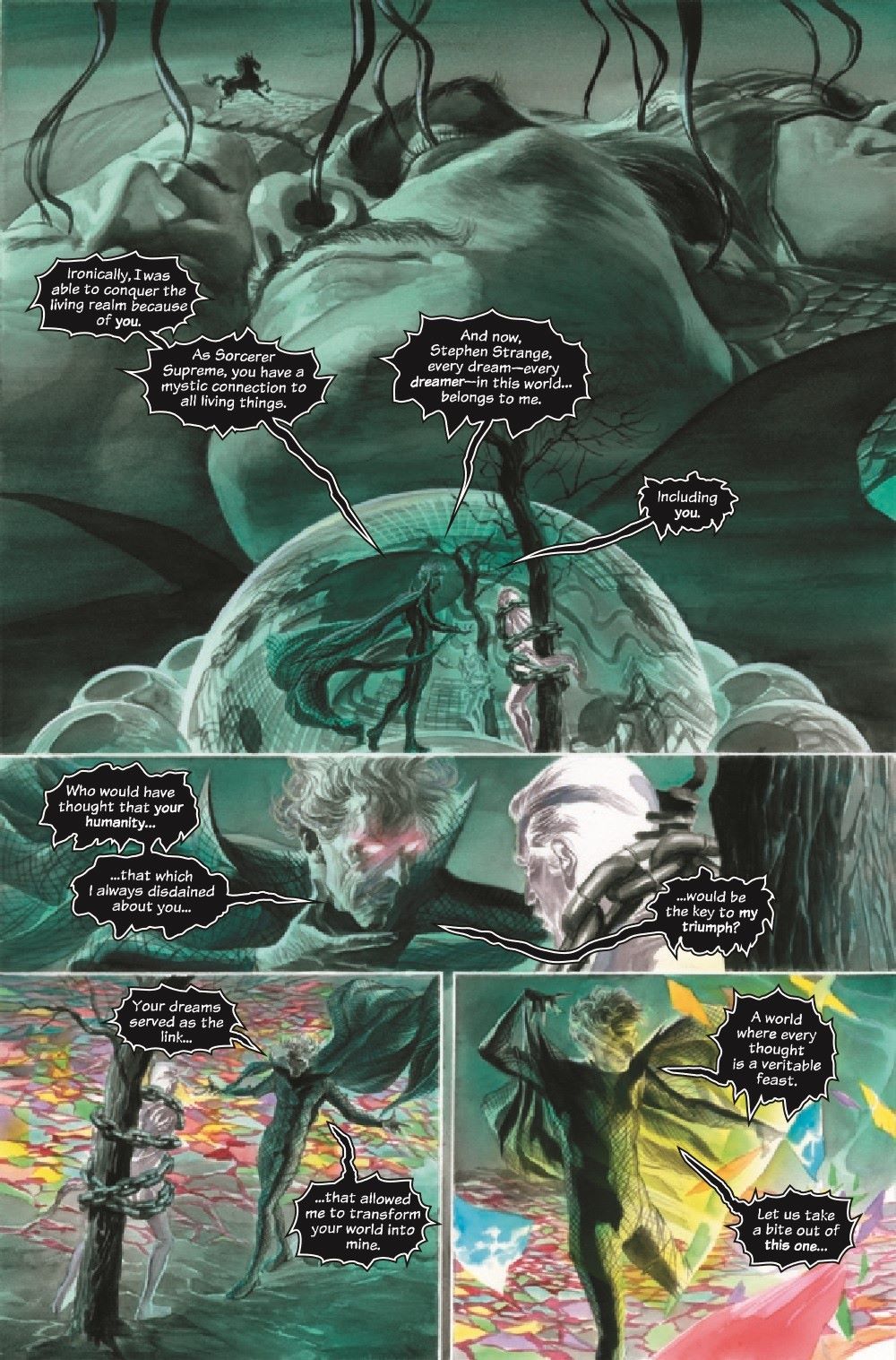 Another artist extravaganza overseen by the master; Alex Ross! In this issue, the X-Men old and new grapple with the swelling of their ranks in a story by Dan Brereton, the Thing, Spider-Man and Doctor Doom contend for the most coveted object on the planet in a tale by Eric Powell, and the Vision pushes himself to the limit in order to save a life in an adventure by Paolo Rivera! All wrapped in a framing sequence painted by Alex and scripted by Steve Darnall!