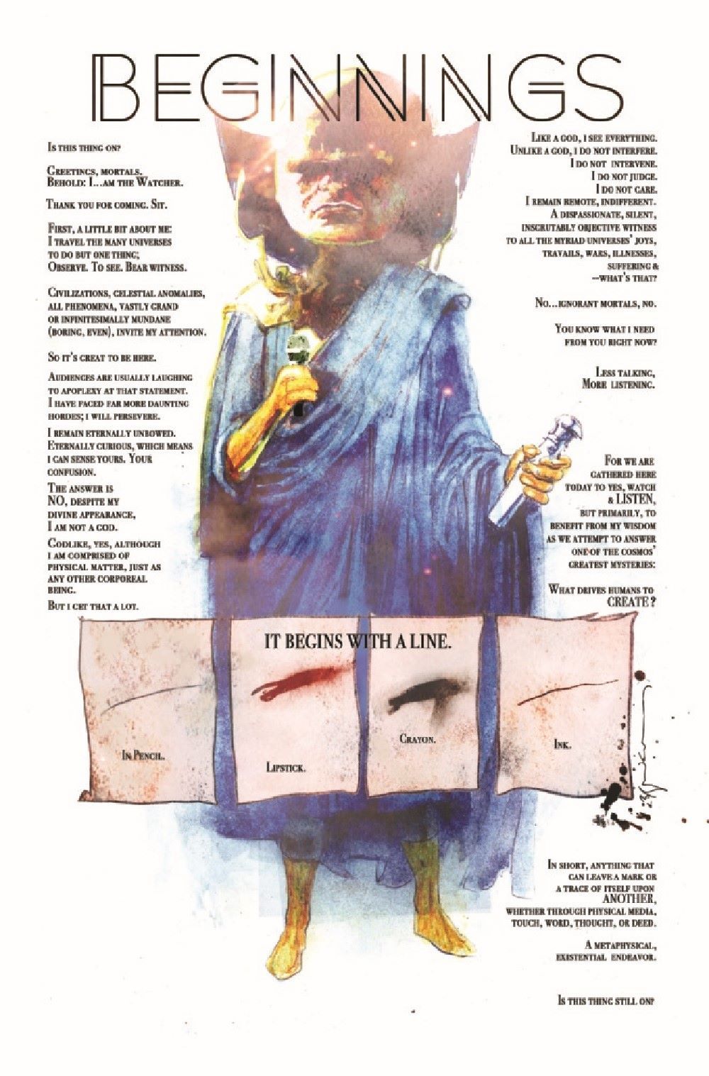 A quartet of visions of life throughout the Marvel Universe, curated by Alex Ross! Alan Weiss presents a lost tale of Namor the Sub-Mariner! The techno-organic Warlock lives again in a story by Bill Sienkiewicz! Scott Gustafson presents a look into the life of Rocket Raccoon! And the Golden Age Black Widow chooses a mate in a story by Ryan Heshka! All wrapped in an epic ongoing adventure by Alex Ross and Steve Darnall!