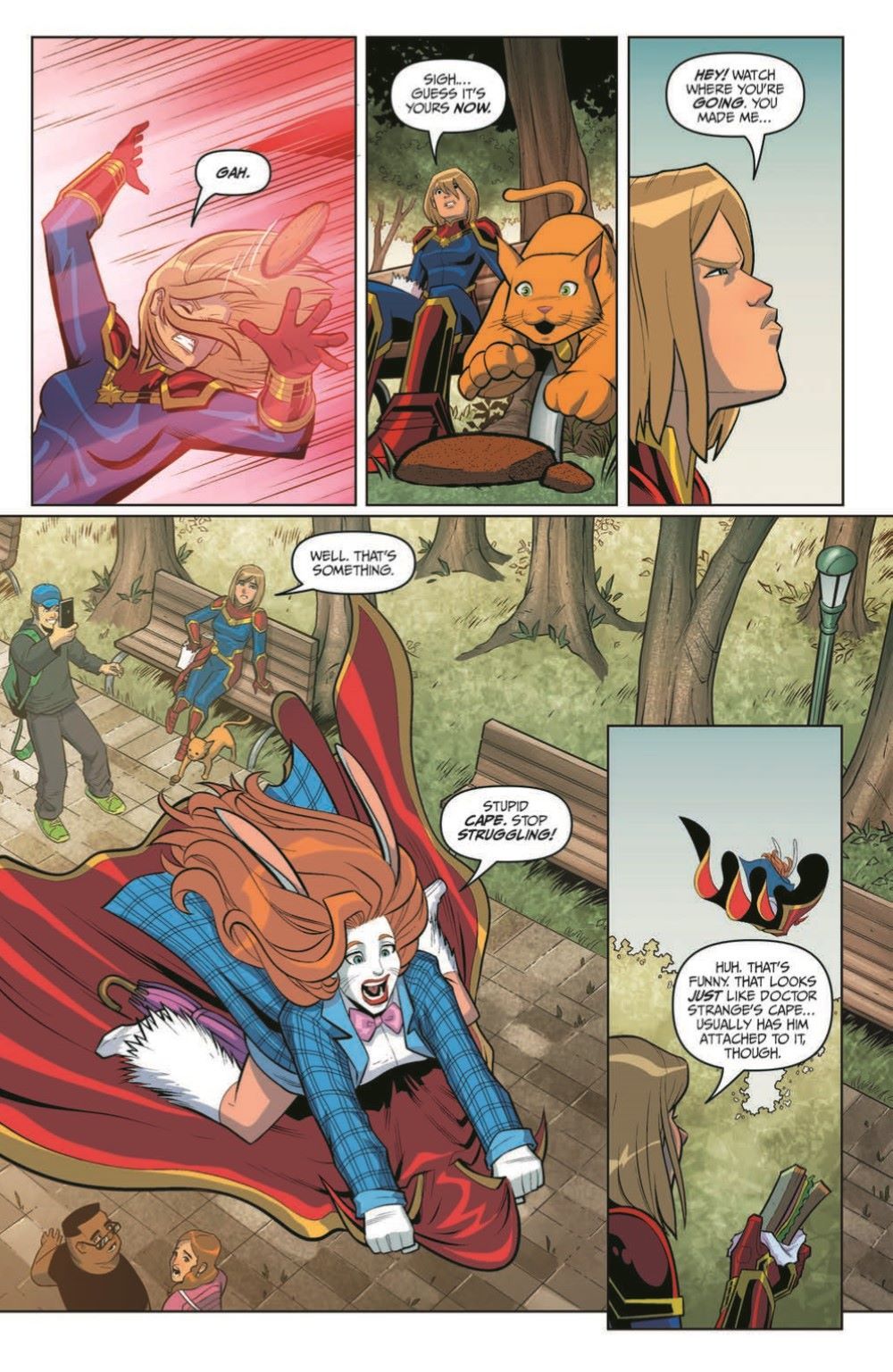 Humor and action collide in the conclusion of Katie Cook's story. After Thor and Captain America's difficulties, find out what the rest of the Avengers are up to on their day off! Chaos reigns as a fiendish villain makes off with one of Dr. Strange's most powerful artifacts!