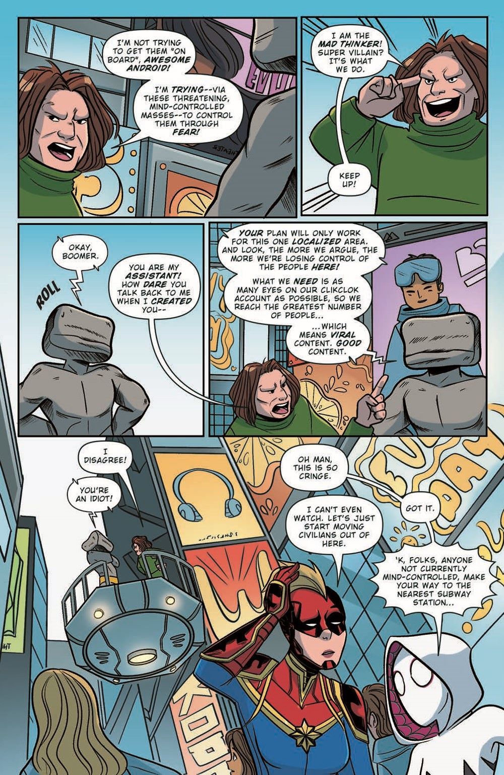 The Mad Thinker and the Awesome Android have a plan to become internet famous, and it involves…all the tourists in Square?! Captain Marvel and Ghost-Spider race to stop the out-of-control livestream before it's too late in this thrilling conclusion to Carol and Gwen's adventures!