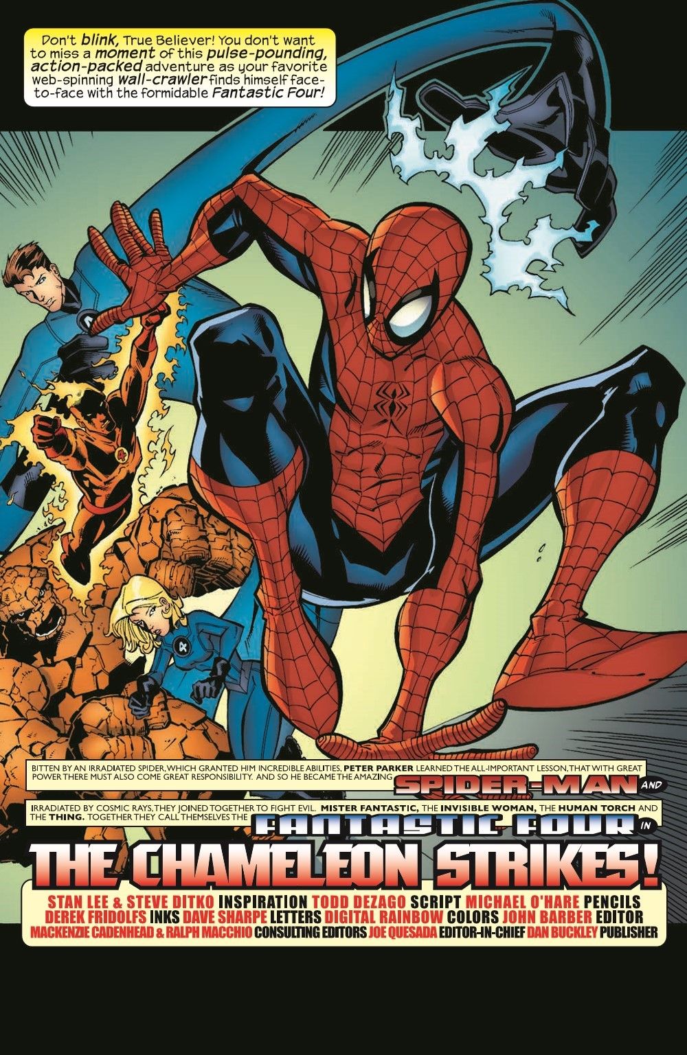 In this Marvel Classics Two-In-One, we follow Spidey on dual adventures with a quartet of super special guests! In "The Chameleon Strikes," Spider-Man goes to enlist in the Fantastic Four, mistakenly believing that they make a salary. Then, Spidey finds himself in hot water-and a head-on collision with action!