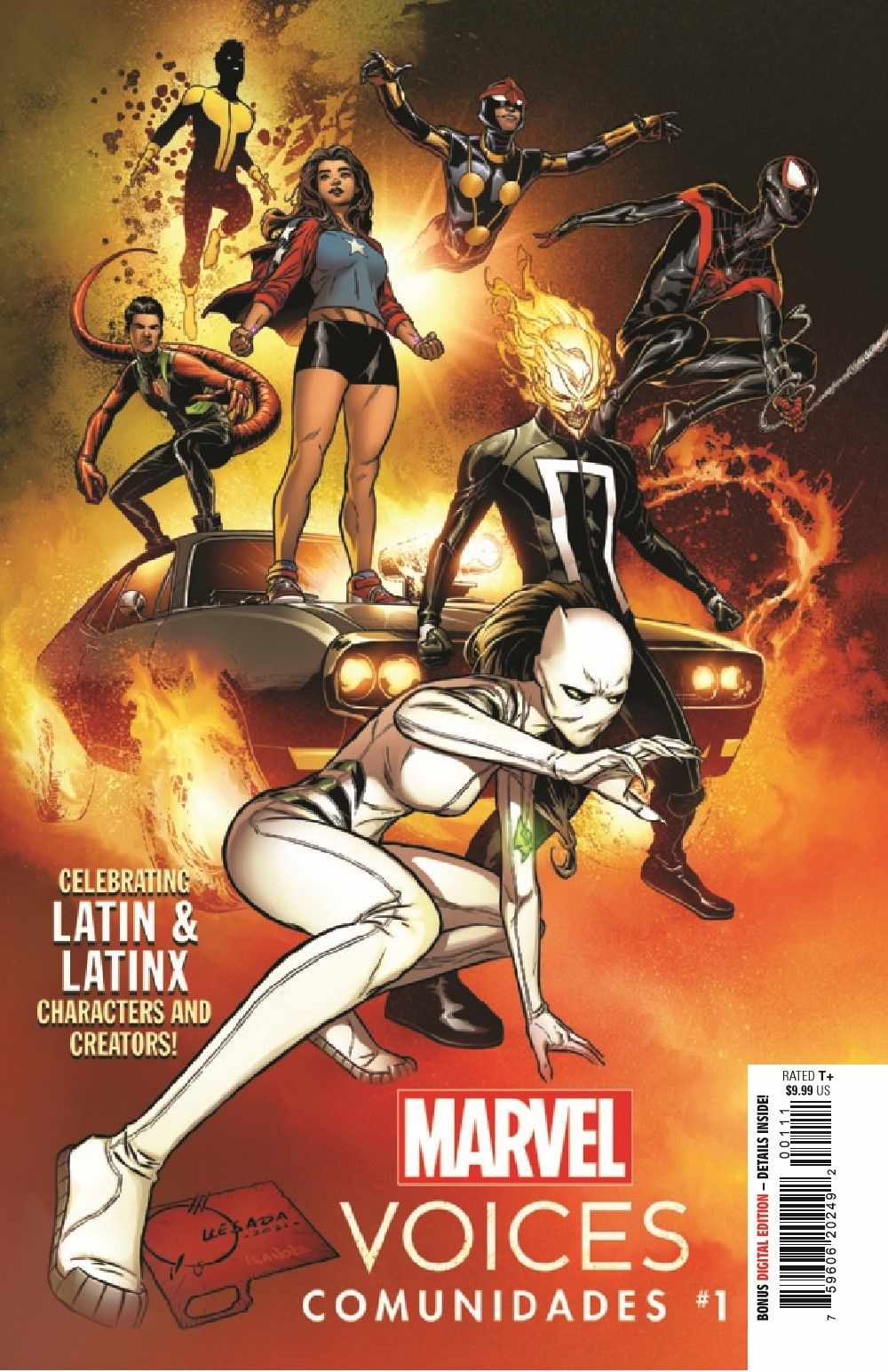 COME JOIN THE FESTIVITIES AS MARVEL CELEBRATES THE MIGHTY LATIN-X HEROES AND CREATORS FROM ALL CORNERS OF THE MARVEL UNIVERSE! Spider-Man! White Tiger! Ghost Rider! And so many more heroes get their moment in the sun as new and fan-favorite creators continue to expand the world outside your window in MARVEL'S VOICES: COMUNIDADES (Community)! Featuring an introduction by renowned scholar Frederick Luis Aldama! PLUS, an all-new hero takes the stage in a whirlwind adventure you won't want to miss.
