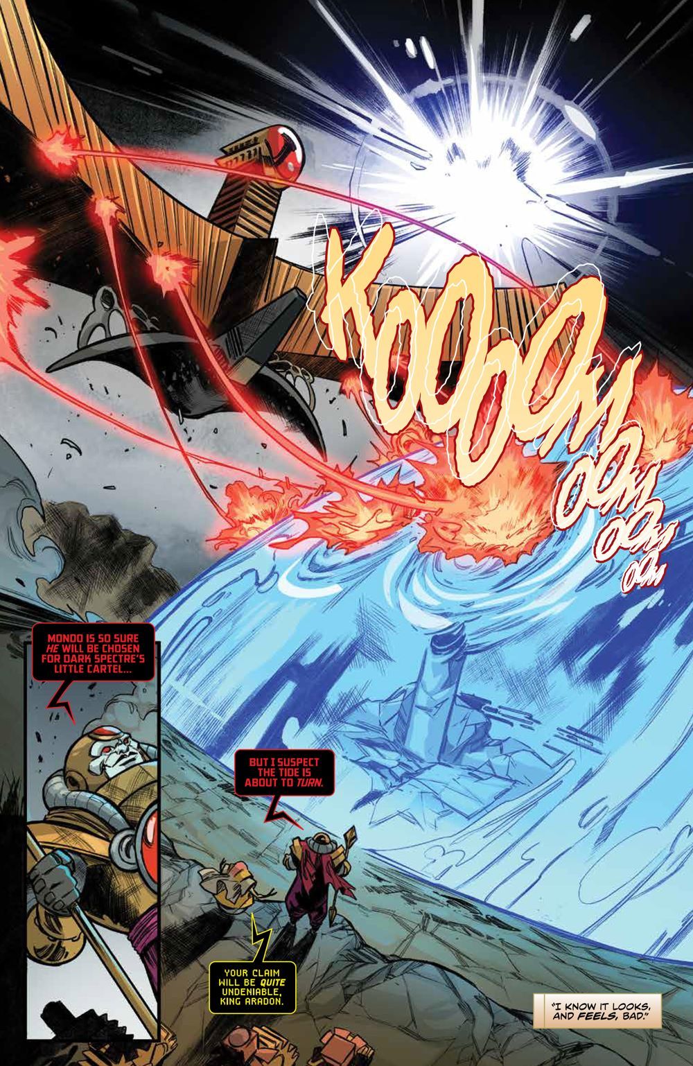 Rocky, Matt, Zordon, and the children have a moment of relative safety in the temporary Promethea Base, but it can only last so long as the force field holds… Meanwhile, plans go into motion over the capital planet of the Lion Empire while conflict erupts back on Earth. Can the Rangers hold the line against King Aradon and save the damaged Power Rangers Headquarters?