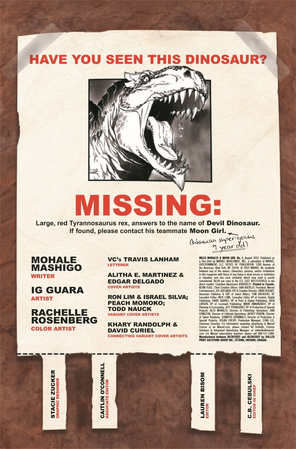 Join Lunella Lafayette - aka Moon Girl - and her trusty T-rex sidekick, Devil Dinosaur, in their biggest adventure yet! In the first of three one-shots, Moon Girl takes on the whole Marvel Universe alongside Miles Morales, the Avengers and the X-Men. Don't miss this new story from acclaimed writer Mohale Mashigo!