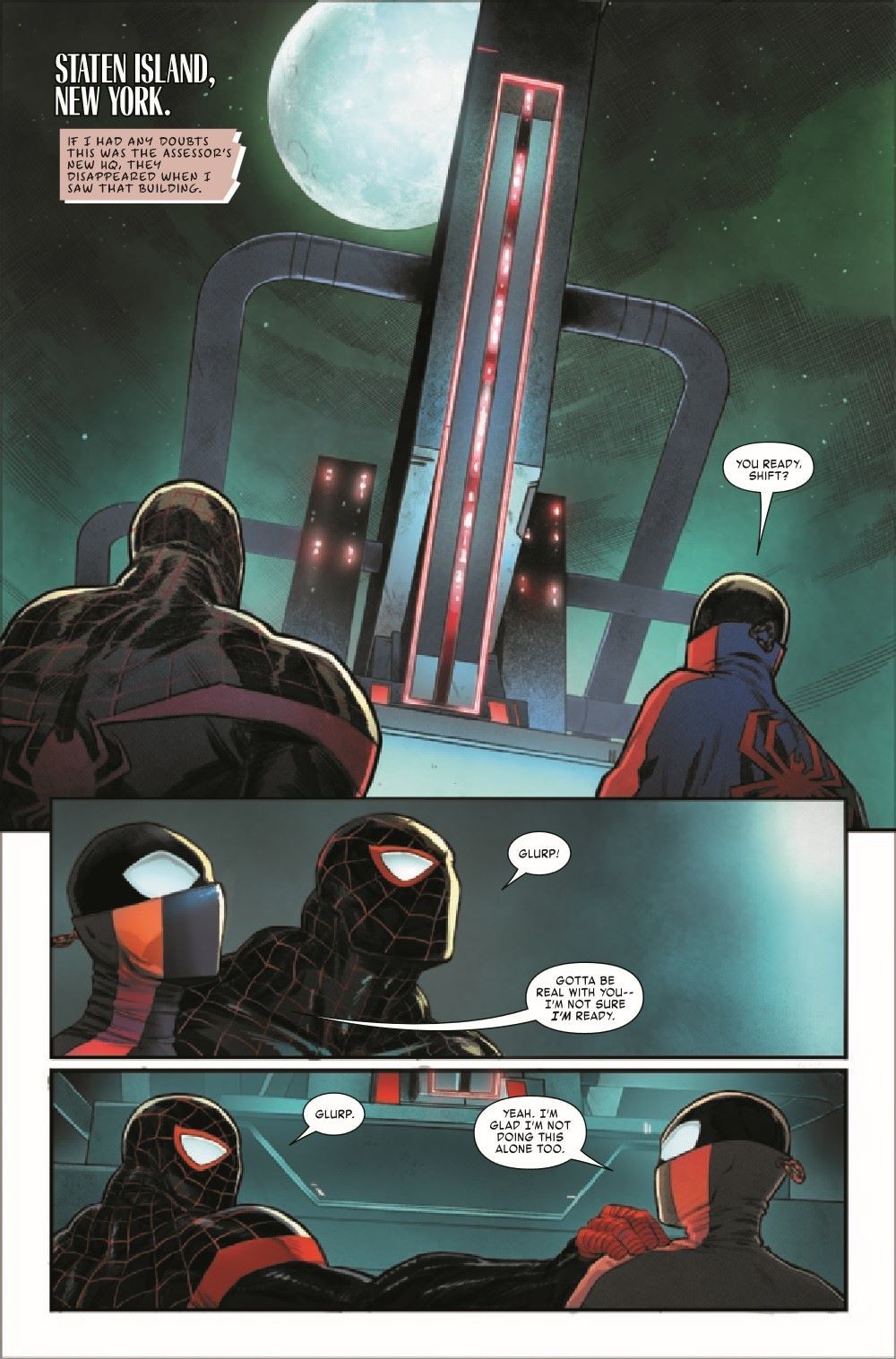 BEYOND TIE-IN! MILES and SHIFT need answers…but they must descend into the darkness of the ASSESSOR'S HQ to find them! What untold horrors await the two SPIDER-MEN?! And what do the Assessor's plans mean for Ben Reilly and the Beyond Corporation?!