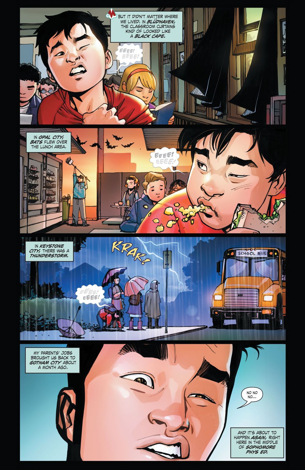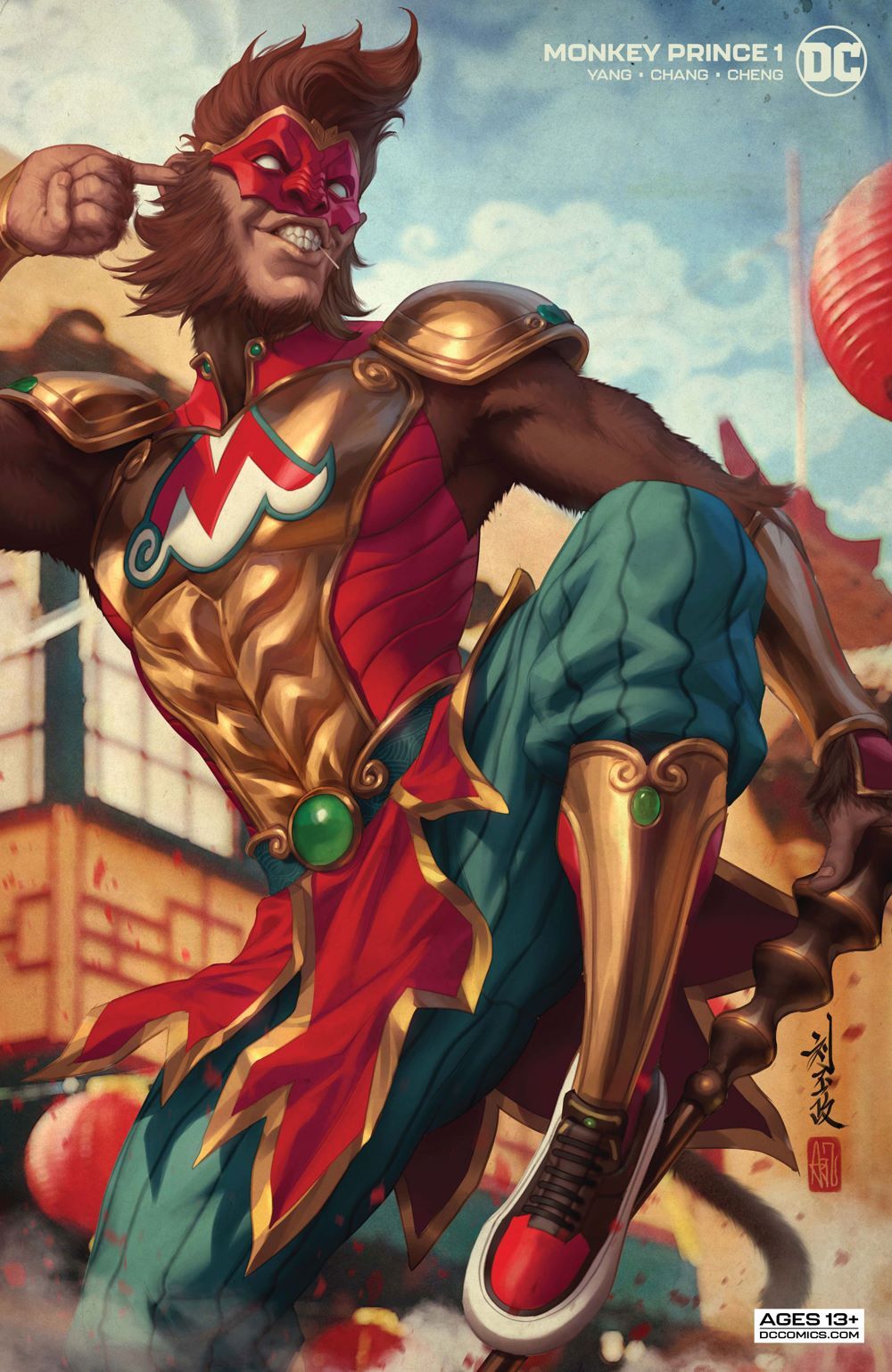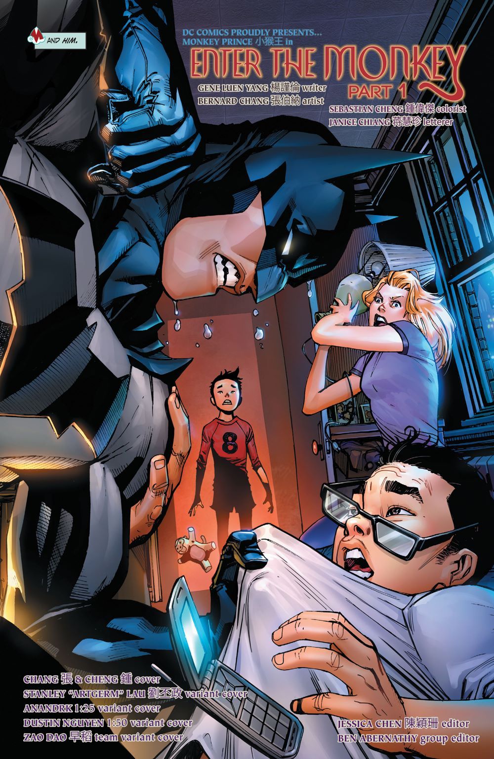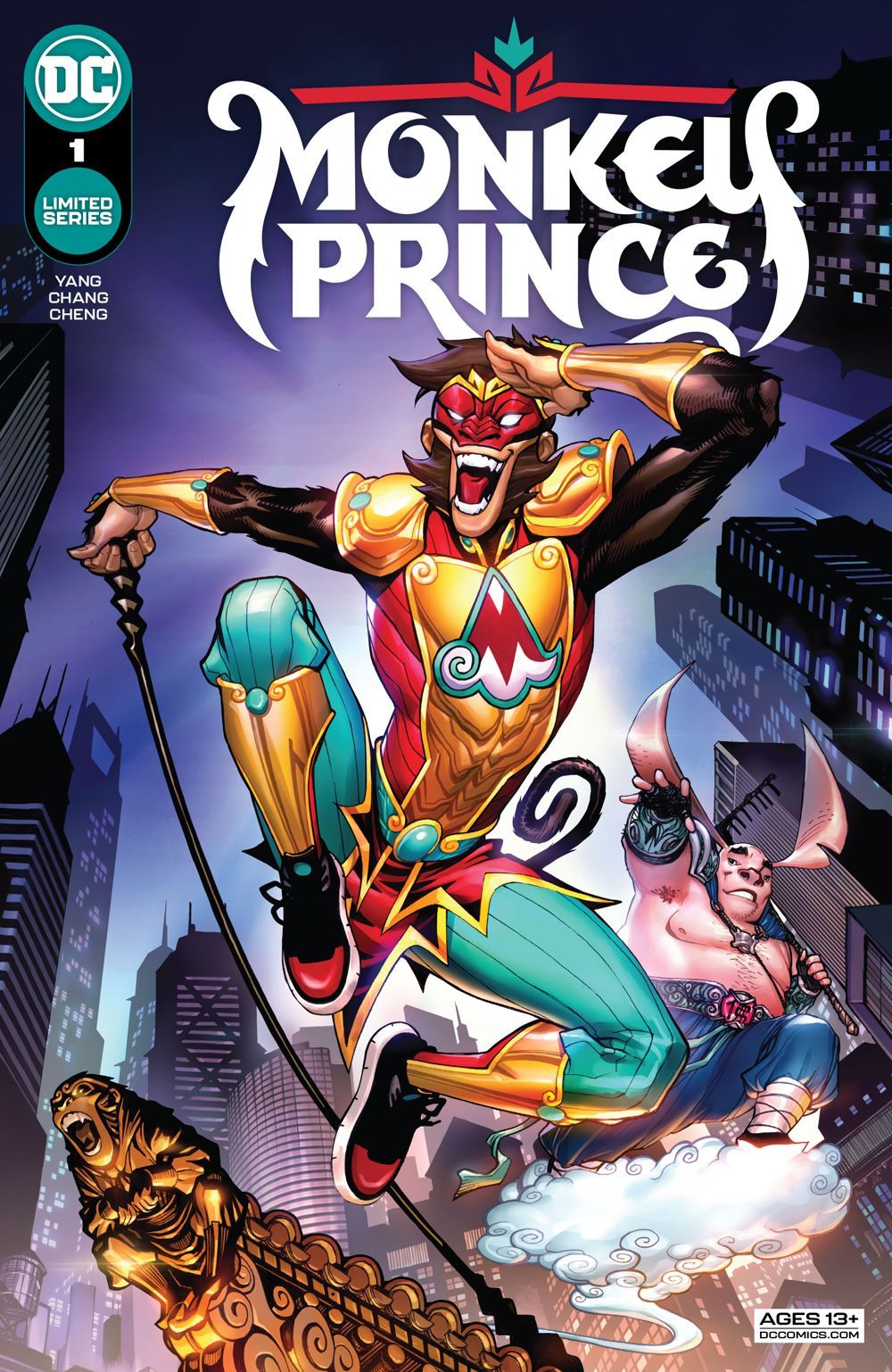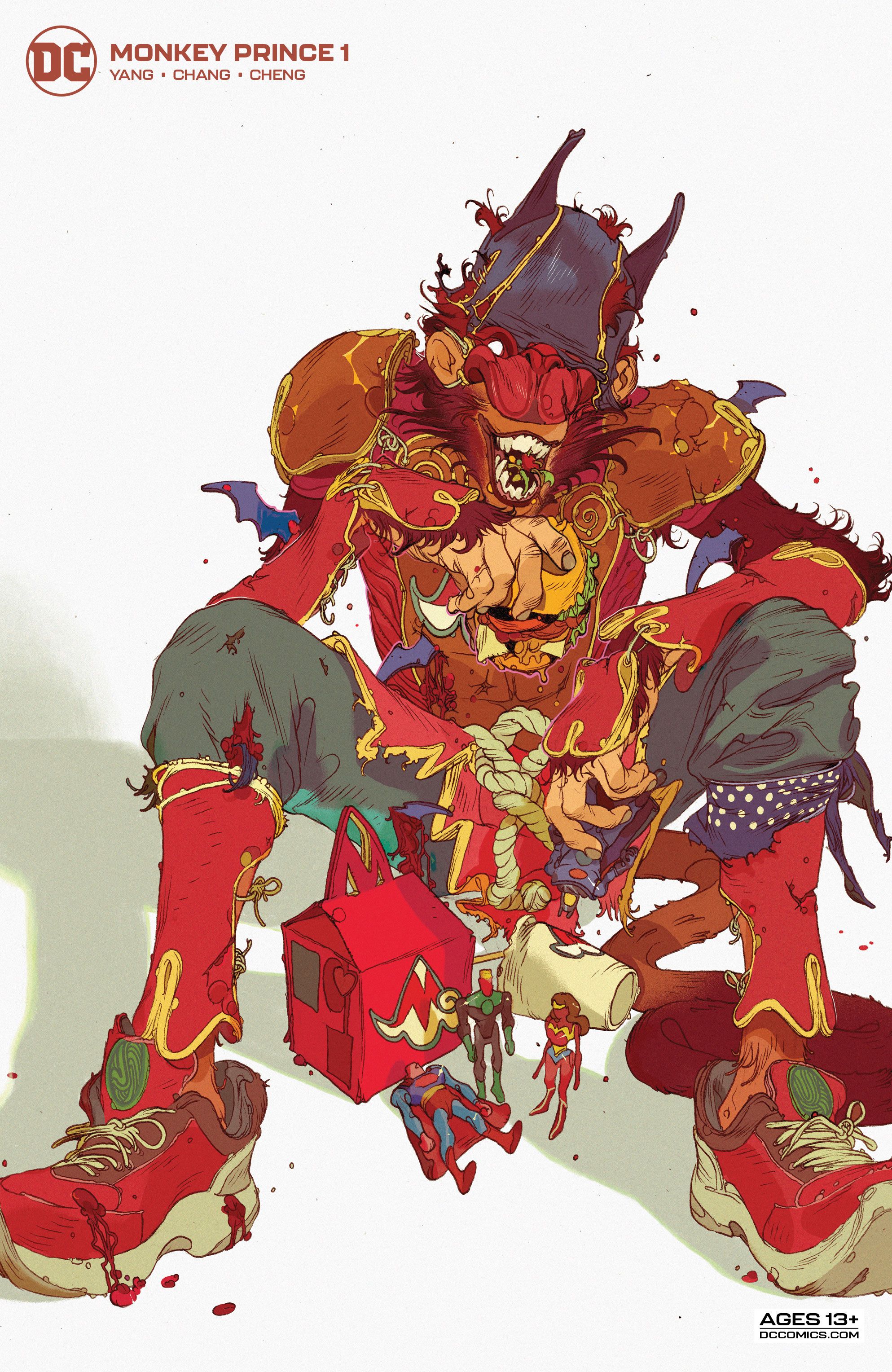 Introducing the newest hero in the DCU, the great sage, equal to the heavens, better than his predecessor the legendary Monkey King, even better than the Justice League—and definitely the Teen Titans—(actually, all the heroes combined), everyone put your hands together for…the Monkey Prince! Marcus Sun moves around a lot because his adoptive parents are freelance henchpeople, so this month he finds himself as the new kid at Gotham City High School, where a mysterious man with pig features asks Marcus to walk through a water curtain to reveal himself as who Marcus really is…someone who has adventured through The Journey to the West, can transform into 72 different formations, can clone himself using his hairs, and is called…the Monkey Prince!