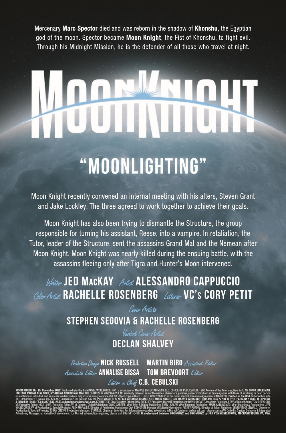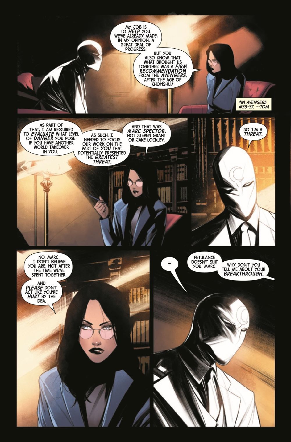 Moon Knight needs information and must rely on his old allies to get it for him. Secrets are ferreted out from the steamiest gutters to the highest seats of power, while Moon Knight must reveal a hidden truth to those closest to him.