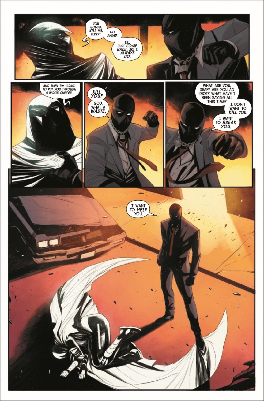 Beaten, bloody, his world burning down around him-this was how the Moon Knight was born. And now it's happening all over again. Outmaneuvered, outgunned, out-planned, Moon Knight's mysterious enemy has strode out of the shadows to strike-and when this villain strikes, they strike true. At the mercy of a maniac, will Moon Knight die yet again?