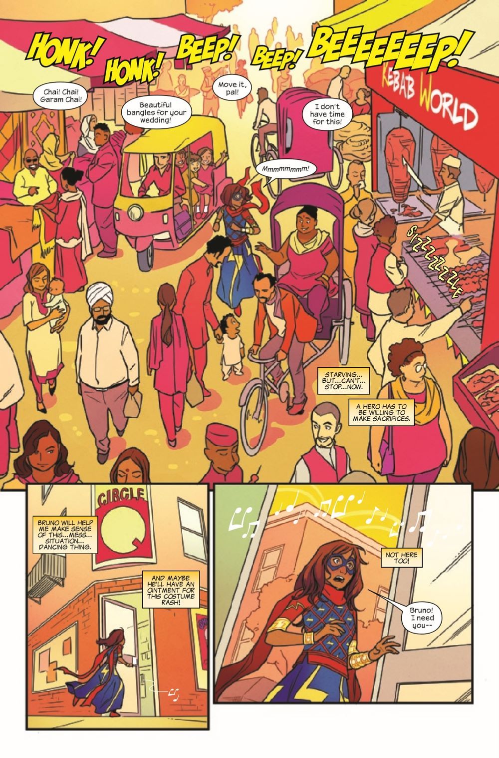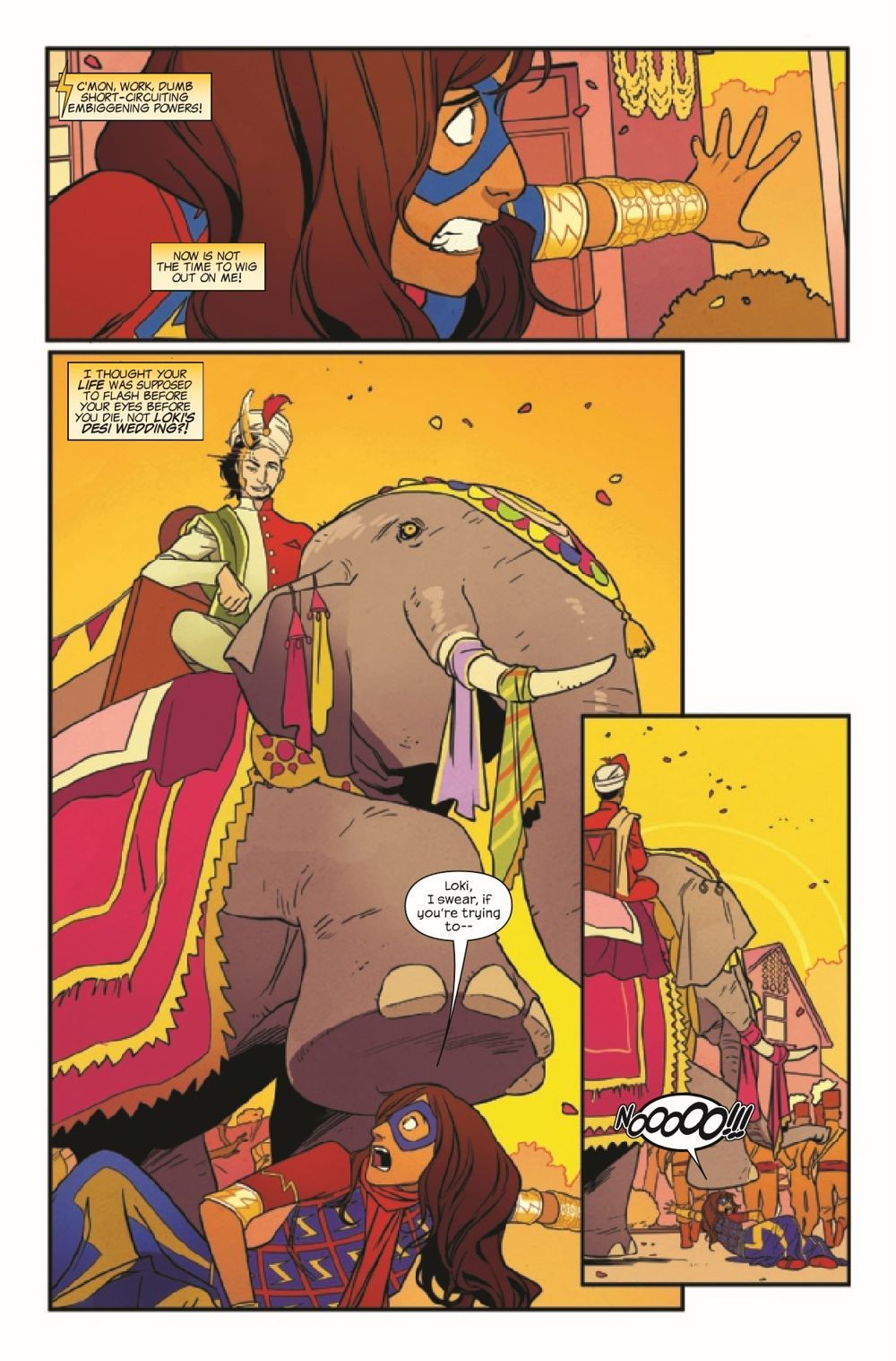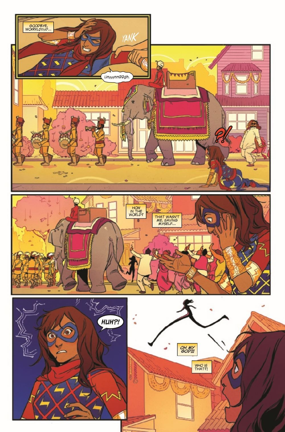 Elephants and illusions and doppelgangers, oh my! Ms. Marvel punches her way out of the Bollywood bubble she landed in when she got home from Chicago. But things are not exactly normal, and she still has no idea what happened - or if it could happen again. What's worse, it seems like she has a copycat lurking around Jersey City, and whoever they are, they're ruining her good name. They're escalating from snack thievery to scuffles with civilians, and wonky powers or no, Ms. Marvel has to find them. Fast.