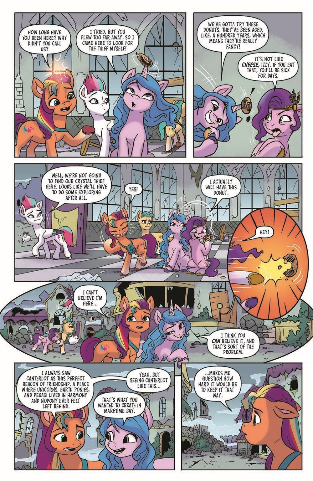 The new adventure continues! Join Sunny, Izzy, Zipp, Pipp, Hitch, and their trusty sidekick Cloudpuff as they explore a brand-new Equestria following the magical events of the hit Netflix movie! The quest to find the missing Unity Crystal has led our Mane 5 to a place they never thought they'd see—Canterlot! But a familiar figure lurks in the shadows, intent on stopping magic for good…