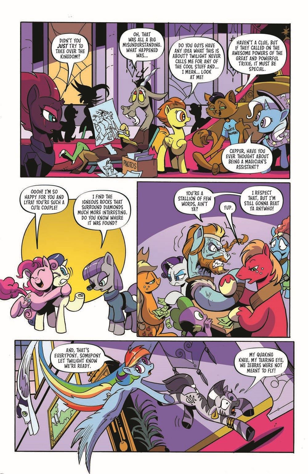 Twilight's first act as ruler of Equestria is to recruit her friends to explore mysterious–and potentially dangerous–areas of the land. She sends Applejack, Zecora, Rockhoof, and Tempest to Zecora's home country, where they learn exciting, surprising information about her. But sometimes friendship can be hard work, and that's what Zecora is discovering as she reunites with Marini, Dust Devil, Cactus Rose, Medley Brook, and Crystal. Plus, an adventure to find the home of the mysterious Grootslang! Collects issues #89–93 of the My Little Pony: Friendship is Magic series.