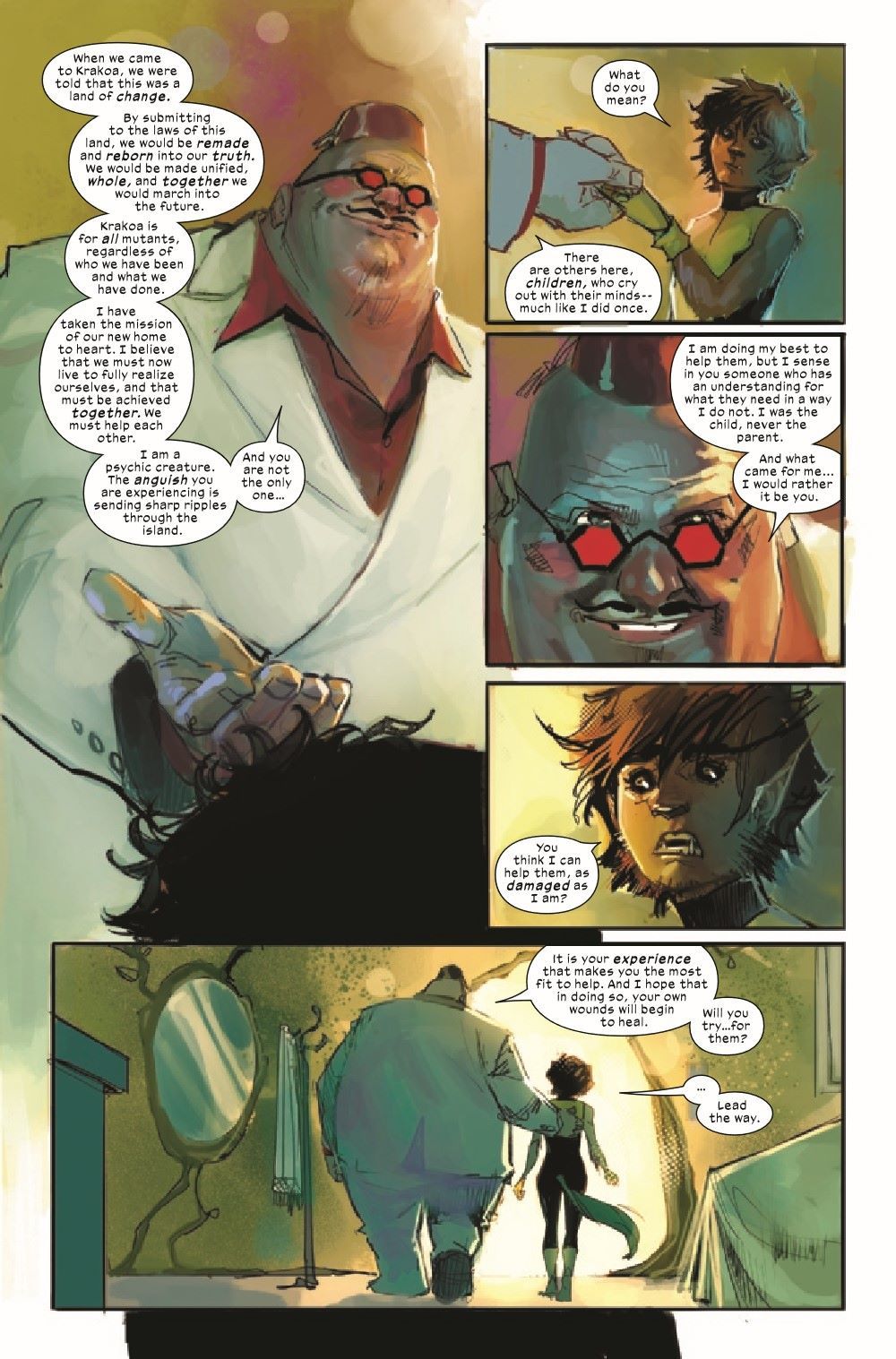WHAT'S LEFT OVER WHEN YOU GO HOME? With a mutant child lost in Otherworld, it's up to the NEW MUTANTS to find and extract him...without losing themselves in the process. Meanwhile, on Krakoa: Warlock makes a friend. Wolfsbane makes a friend. Magik makes some enemies.