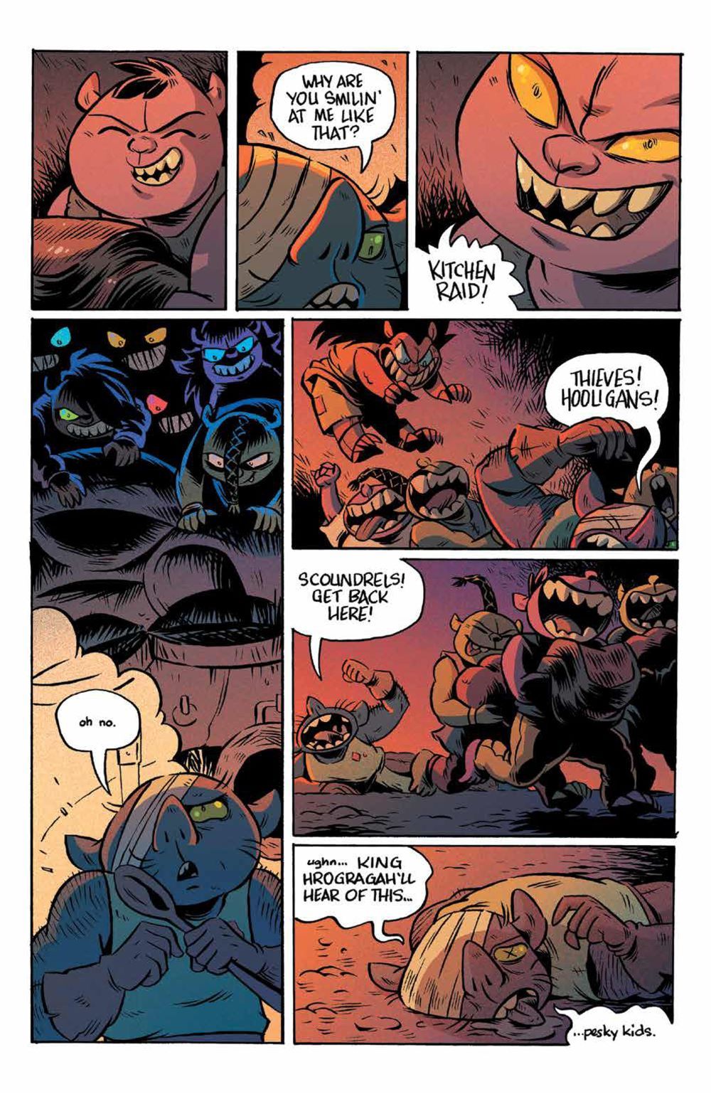 After getting into trouble with the fearsome squirrels of the Eerieasallhel forest, Bog, Zep, Pez, Utzu and Gurh are in for a fight for their lives against the tiny (but territorial!) beasties. Then it's back home to get even with King Hrogragah for sending them on a fool's errand! Plus, there's something weird about their haul, it might be something more exciting than just acorns... it's just too bad it might get them kicked out!