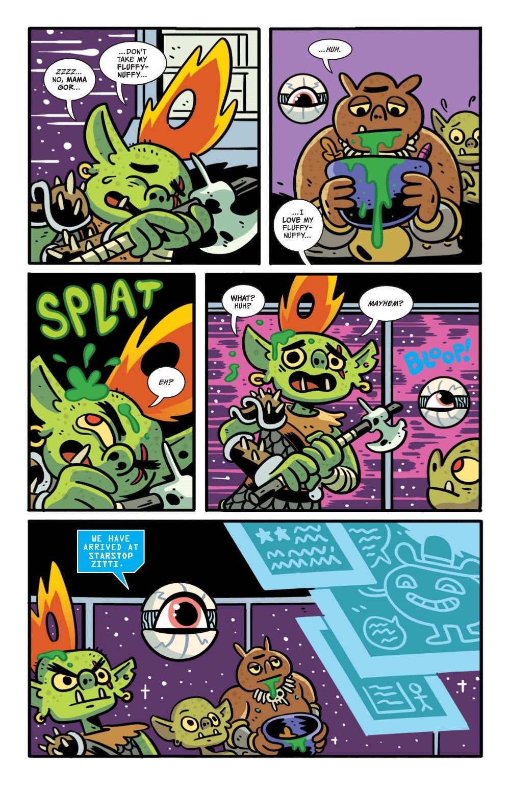 When the orcs eat literally everything on the Aarken, D.O.N.A. stops at the three-star dining and tourist-trap experience Starstop Zitti for provisions. Kravis goes Wally Waffles-wild until he unwittingly ticks off the cutest scariest biker gang in the galactigon. Will the orcs rumble with the Fuzzballs?!
