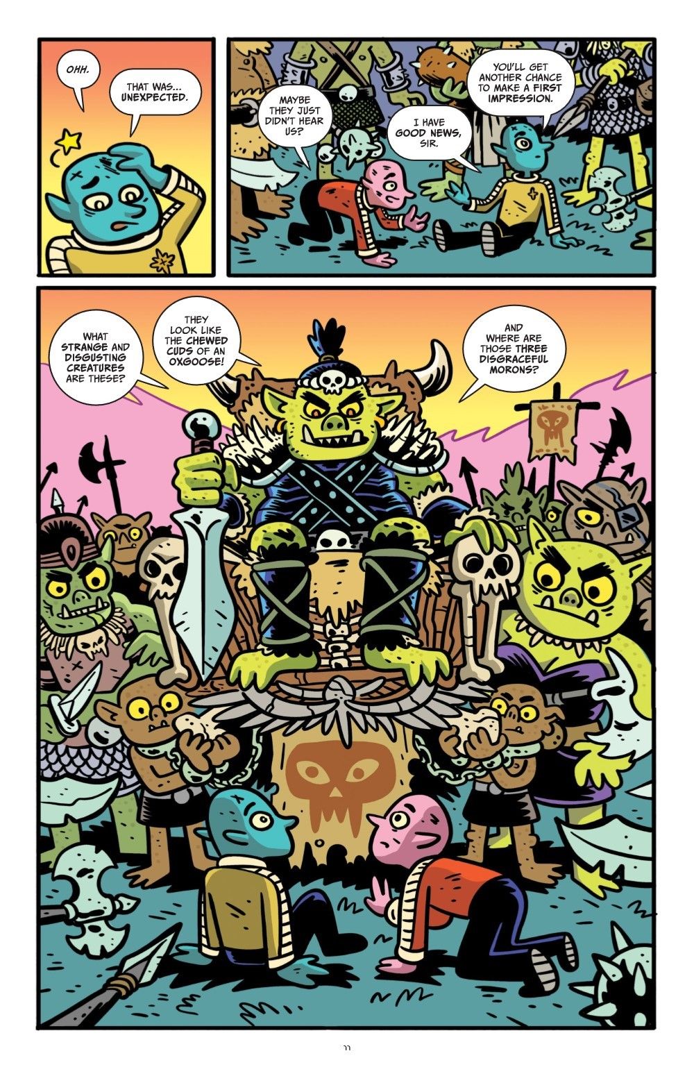 Get ready to ha-lorp! Gor, Kravis, and Mongtar are just three Orcs trying to survive while on the run from everything and everyone on their homeworld. When the naive bureaucrats from StarBleep land on the planet Muckball, the orcs unwittingly steal the most advanced ship in the fleet and blast into the dankest reaches of the outer galactigon. After befriending the ship's AI, D.O.N.A., the gang must evade everything from pacifier-sucking bounty hunters to raucous nightclubs to steampunk Space Rats. The cosmos will never be the same, thanks to the Orcs in Space!