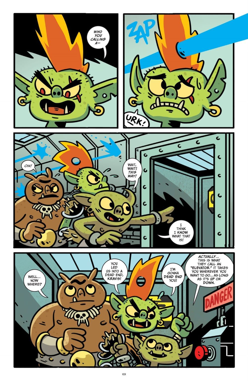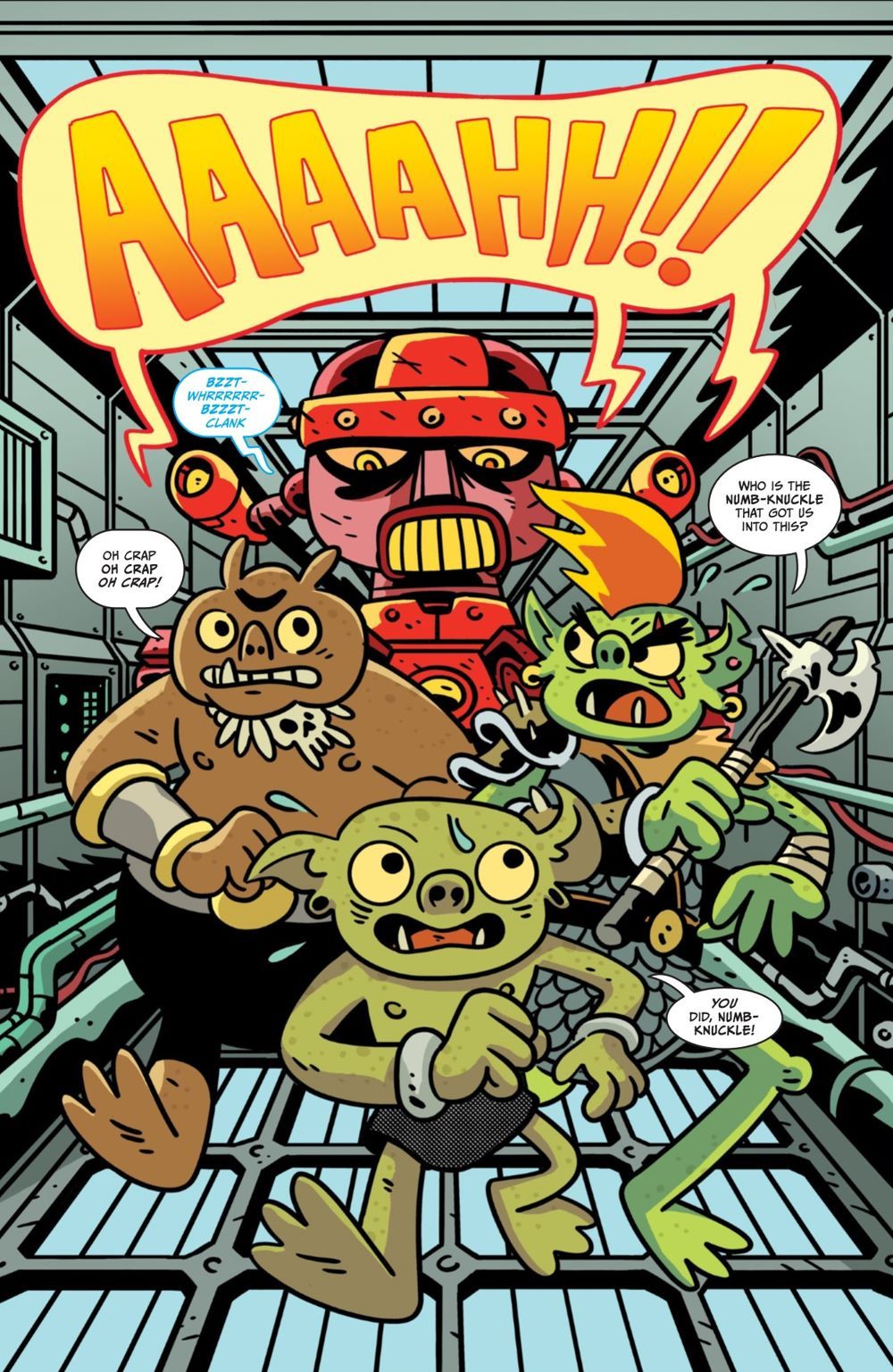 Mayhem ensues! Volume 2 of Justin Roiland's hilarious series Orcs in Space finds Gor, Kravis, and Mongtar making new allies and enemies across the greater Galactigon. With the help of an increasingly sapient D.O.N.A., the orcs face off with an eccentric cyber-scrapper, join forces with a cantankerous cat mechanic, and incur the wrath of a biker gang called the Fuzzballs to discover the truth about D.O.N.A.'s mysterious creator. Will they survive the standoff with evil scientist Dr. Smedley before Starbleep, the Space Rats, and the rest of the orc-hating universe hunt them down?
