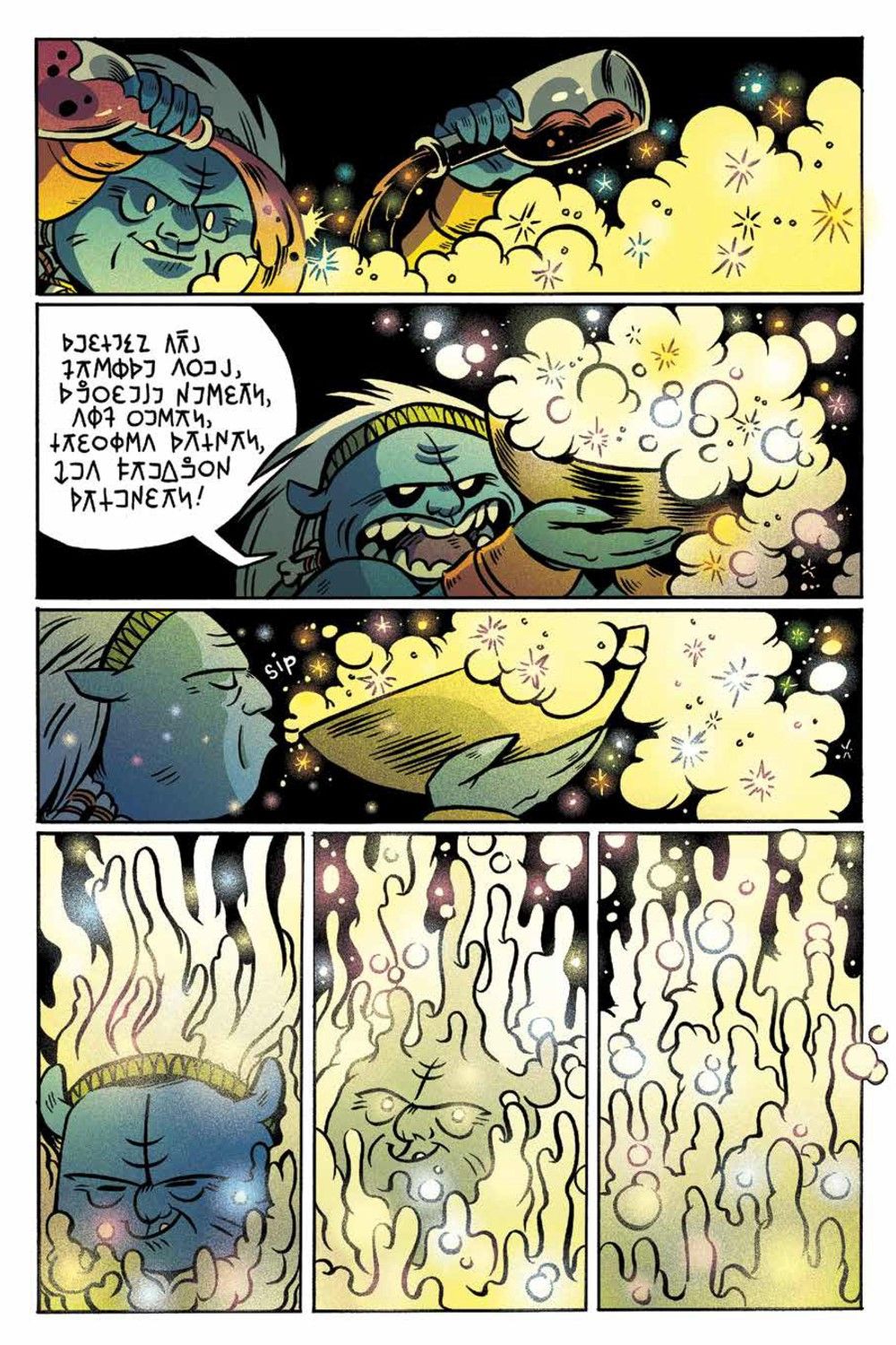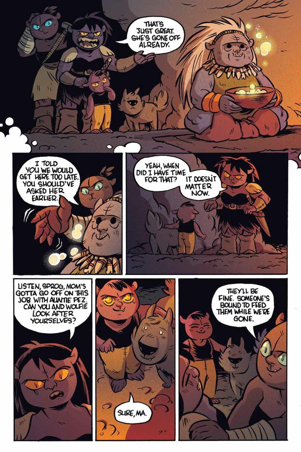 FAME, FORTUNE & FIRE-BREATHING DRAGONS! After being banished from their Orcish village by King Hrograhgah, Bog and his misfit crew venture out into the Known World to seek their fortune, and hopefully find their way back home again. Tag along with Bog, Zep, Pez, Utzu, and Gurh as they venture through the dreaded Eerieasallhel Forest, face off against trolls, gnomes, squirrels and more, and follow in the footsteps of the legendary Orc hero, Drod One-Eye! The entire hilarious limited series by acclaimed cartoonist Christine Larsen (Adventure Time) collected in a single volume to be enjoyed by any and all! Collects Orcs! #1-6.