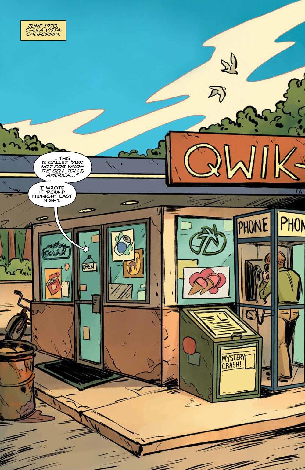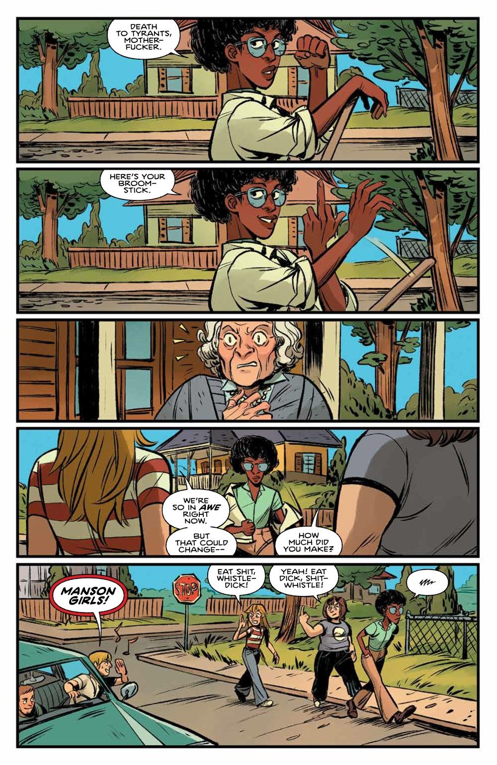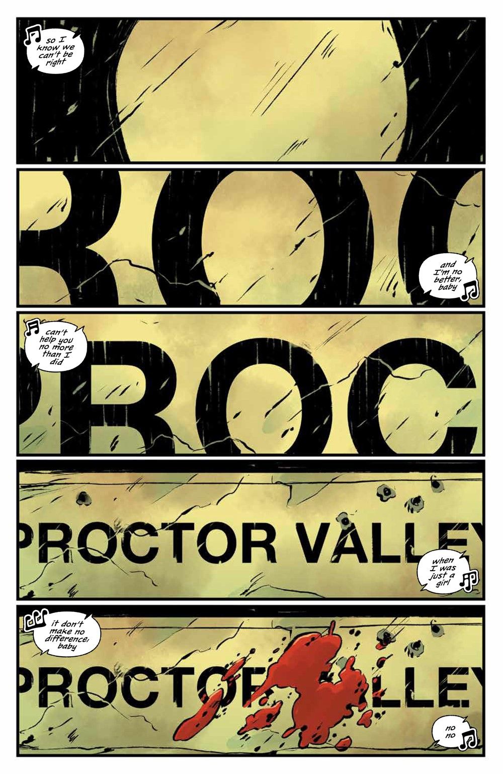 It's the 1970s. It's the most haunted, demon-infested stretch of road in America. Welcome to Proctor Valley Road. August, Rylee, Cora, and Jennie have organized a "Spook Tour" on the infamous roadway with their classmates to fund attending the concert of their dreams. But when their visit turns deadly, these four friends race to rescue the missing students… before the town tears them limb from limb and slay the evils roaming Proctor Valley Road… along with the monsters lurking in the hearts of 1970s America. Visionary author Grant Morrison (Klaus, Batman: Arkham Asylum) and co-writer Alex Child (BBC's Holby City) along with artist Naomi Franquiz (Tales from Harrow County) present a chilling new horror series about the mysterious monsters that haunt Proctor Valley Road – and the four misfit teenagers who must stop them. Collects Proctor Valley Road #1-5.
