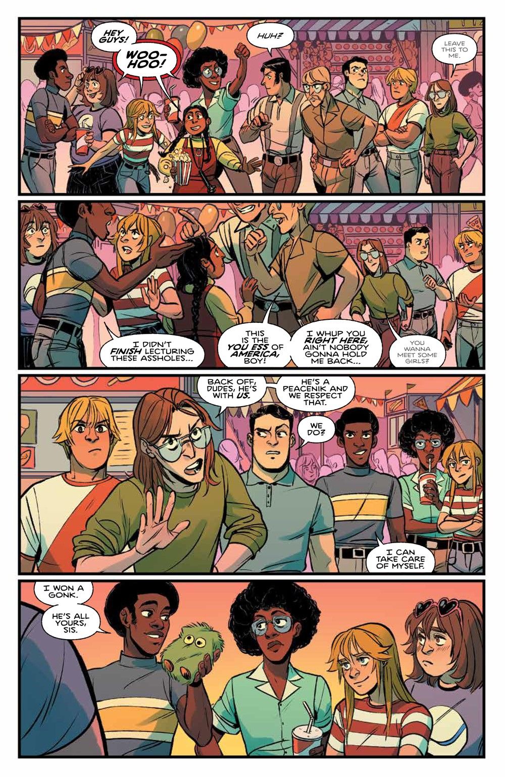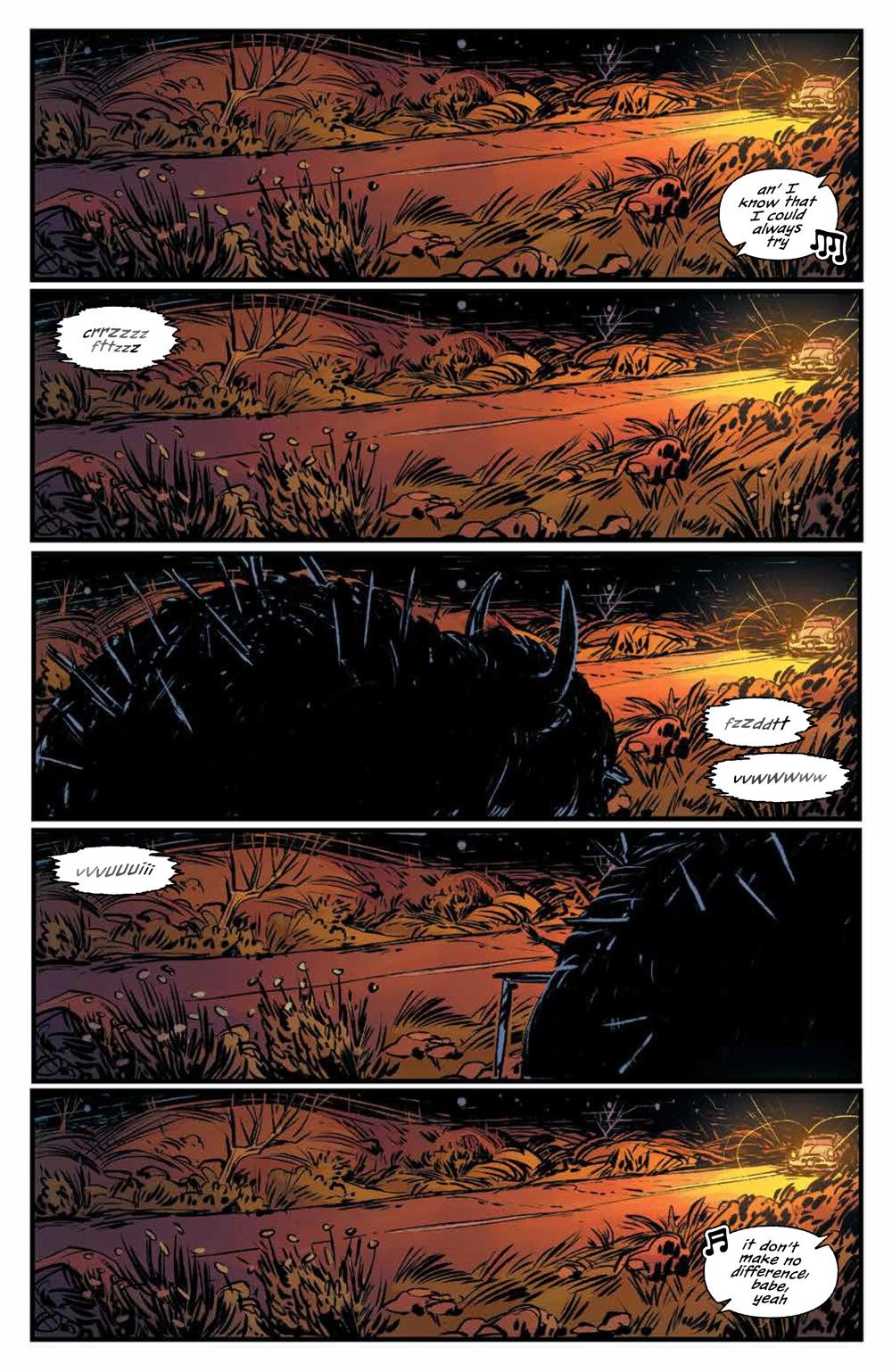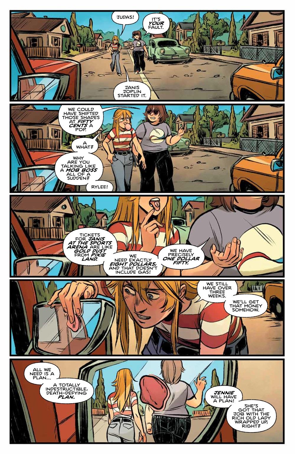 It's the 1970s. It's the most haunted, demon-infested stretch of road in America. Welcome to Proctor Valley Road. August, Rylee, Cora, and Jennie have organized a "Spook Tour" on the infamous roadway with their classmates to fund attending the concert of their dreams. But when their visit turns deadly, these four friends race to rescue the missing students… before the town tears them limb from limb and slay the evils roaming Proctor Valley Road… along with the monsters lurking in the hearts of 1970s America. Visionary author Grant Morrison (Klaus, Batman: Arkham Asylum) and co-writer Alex Child (BBC's Holby City) along with artist Naomi Franquiz (Tales from Harrow County) present a chilling new horror series about the mysterious monsters that haunt Proctor Valley Road – and the four misfit teenagers who must stop them. Collects Proctor Valley Road #1-5.