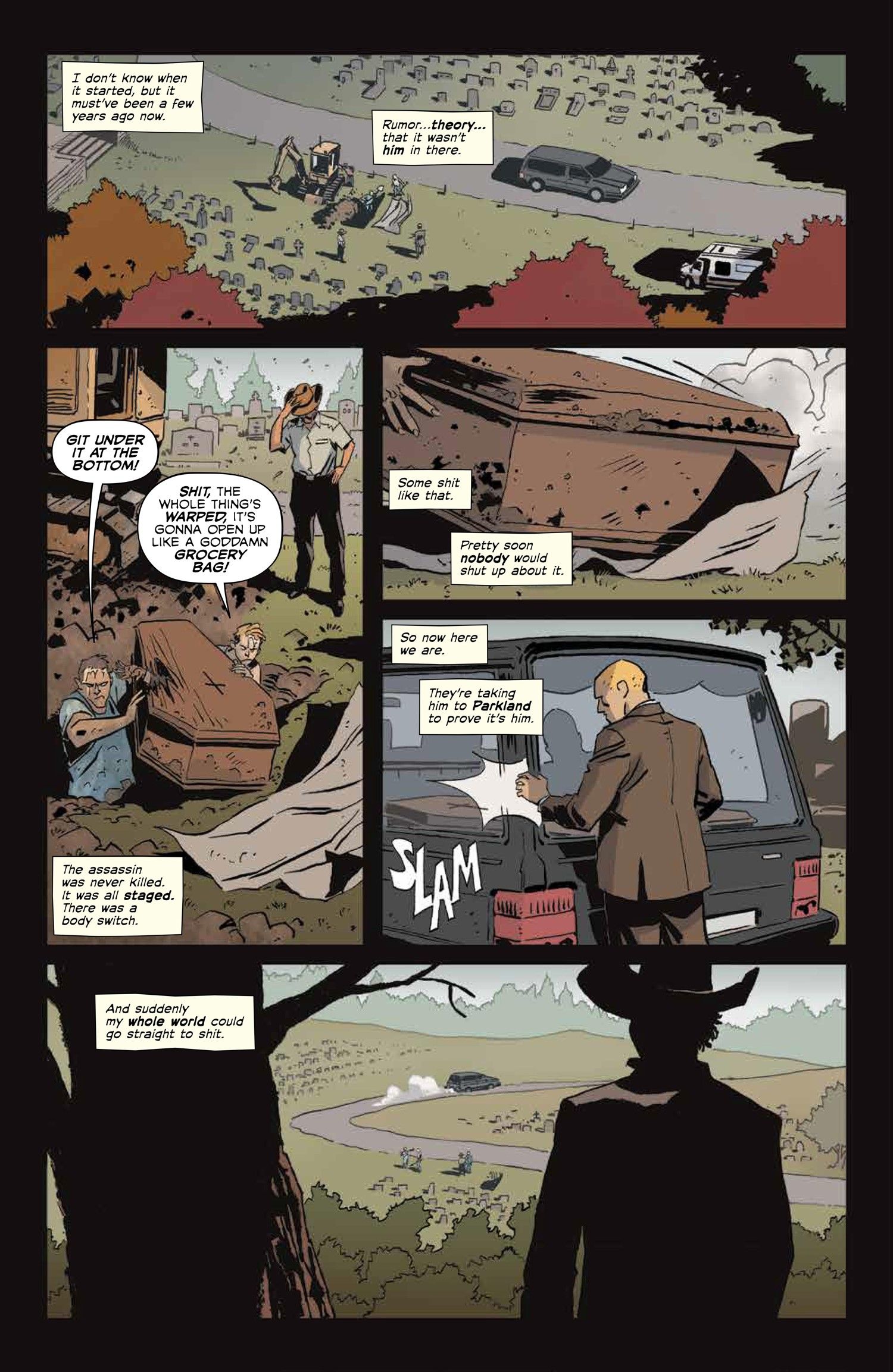 NEW SERIES. Where is Lee Harvey Oswald's body? The Kennedy assassination is a rat's nest of conspiracy theories: mafia involvement, the second gunman, government cover-up… but the most important chapter of this sordid tale may just be the theory that the body buried at Oswald's Rose Hill gravesite is not actually Lee Harvey himself. Meet the ragtag group of "useful idiots" who are unwittingly brought together to clean up the crime of the century – a wannabe cowboy from Wisconsin, a Buddy Holly-idolizing (former) car thief, a world-weary Civil Rights activist ready for revolution, and a failed G-Man who still acts the part – and specifically, regarding the matter of Oswald's body. For fans of Department of Truth and Time Before Time comes an off-kilter crime thriller set in the shadows of history's greatest conspiracy by Eisner Award-nominated writer, producer, and director Christopher Cantwell (Iron Man, The United States of Captain America) and artist Luca Casalanguida (Lost Soldiers, Scout's Honor).