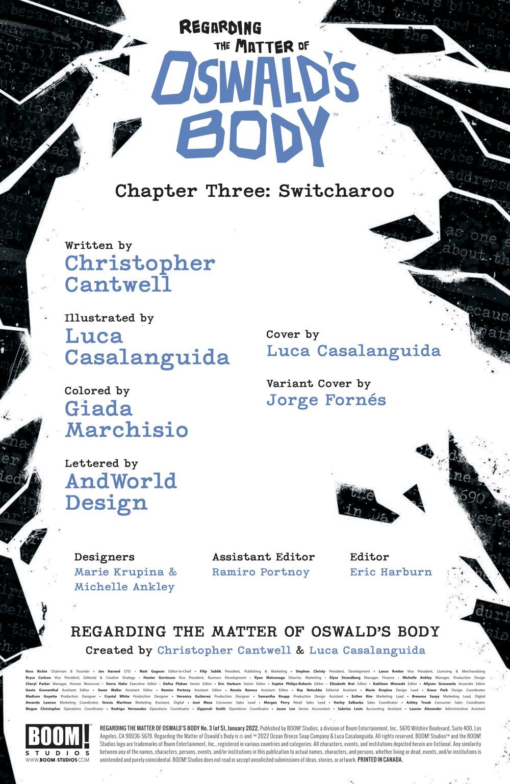 REGARDING THE MATTER OF OSWALD'S BODY #3 (OF 5)