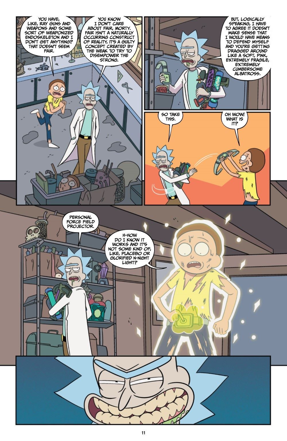 Tired of forever being in danger, Morty gets Rick to procure him a powerful armored suit, but of course things never go easy like you'd expect, bruh. Read now the tale of THE RICKONING, an event so cataclysmic that the worlds of Rick and Morty will never be the same.
