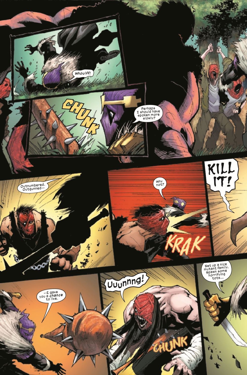 Spider-Man has gone from "Friendly Neigborhood" to "Terrifying Jungle." Peter Parker has been mutated by horrible villains and is being hunted by one of Marvel's greatest villains: Baron Zemo. But Peter's fighting back, and he's taken over a tribe of monstrous victims like him. And the power they wield? It's going to be awfully hard to be responsible.