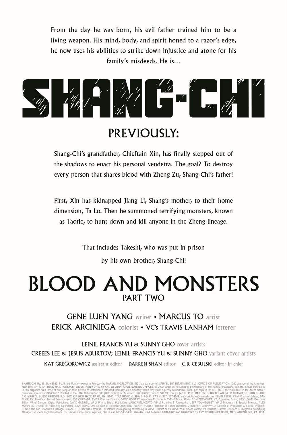 Shang-Chi's family is in pieces, but when the going gets tough, family sticks together. It's time for the family to reunite…and that means everybody! For the only way to protect each other from certain death is together! But will Shang-Chi's siblings be able to forgive him and forget the past?