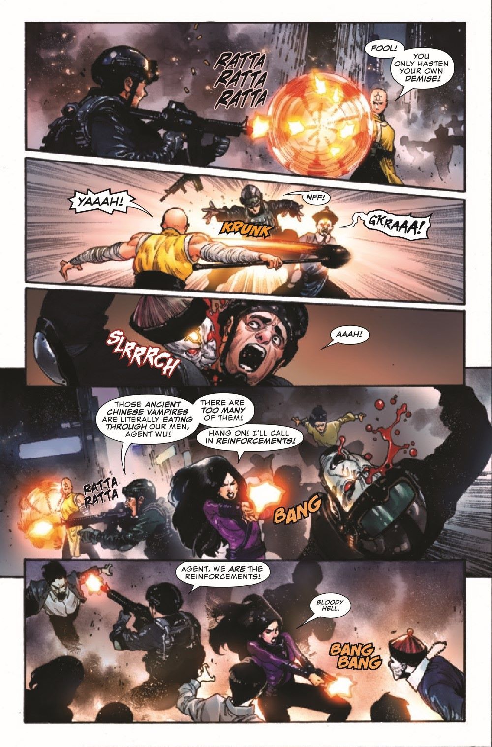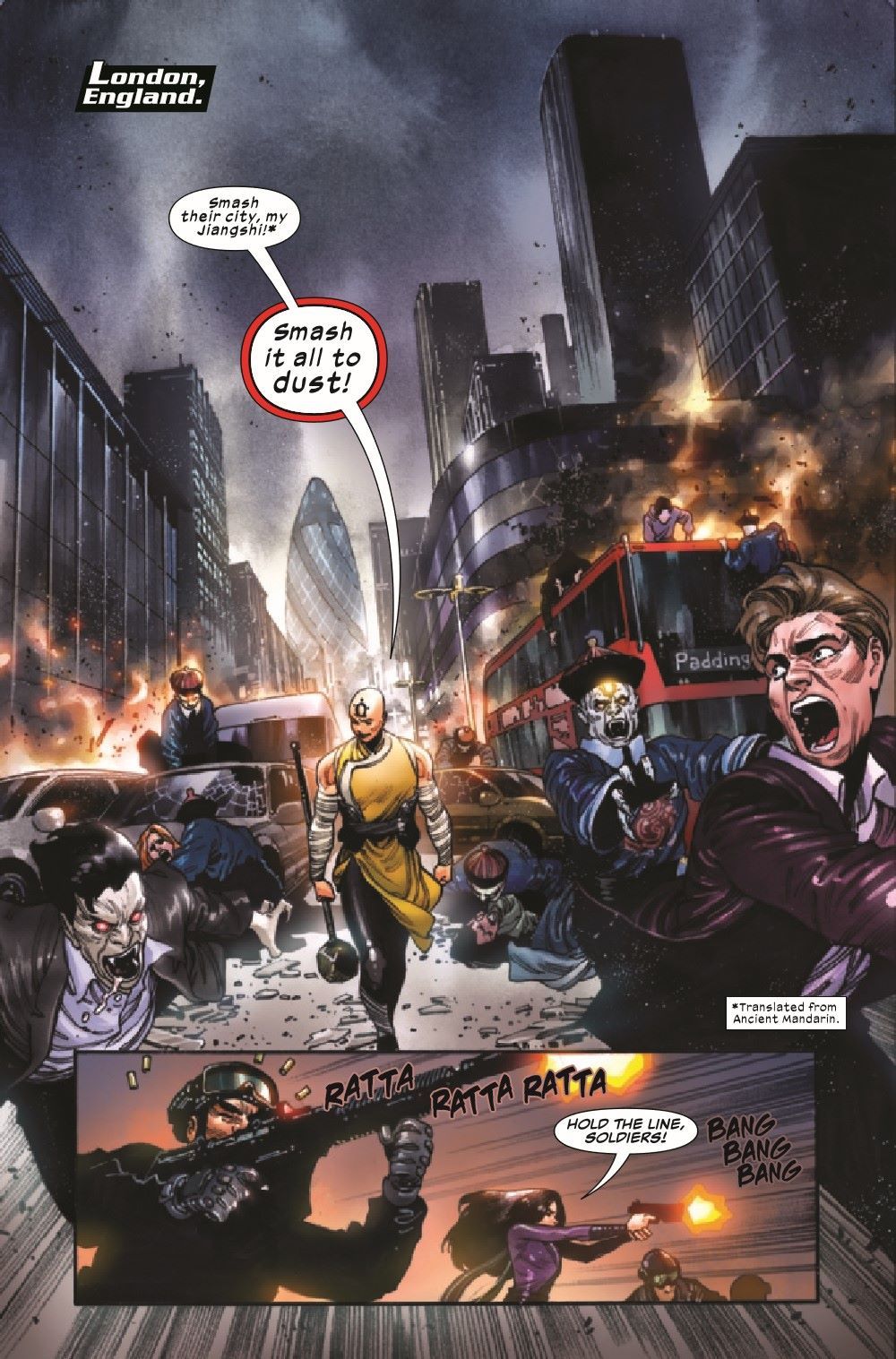 THE GRAND FINALE! SISTER HAMMER launches her final attack on the Western world with her army of vampires! Will SHANG-CHI and his family be able to stop her? And will Shang-Chi finally accept the destiny laid out by his father?