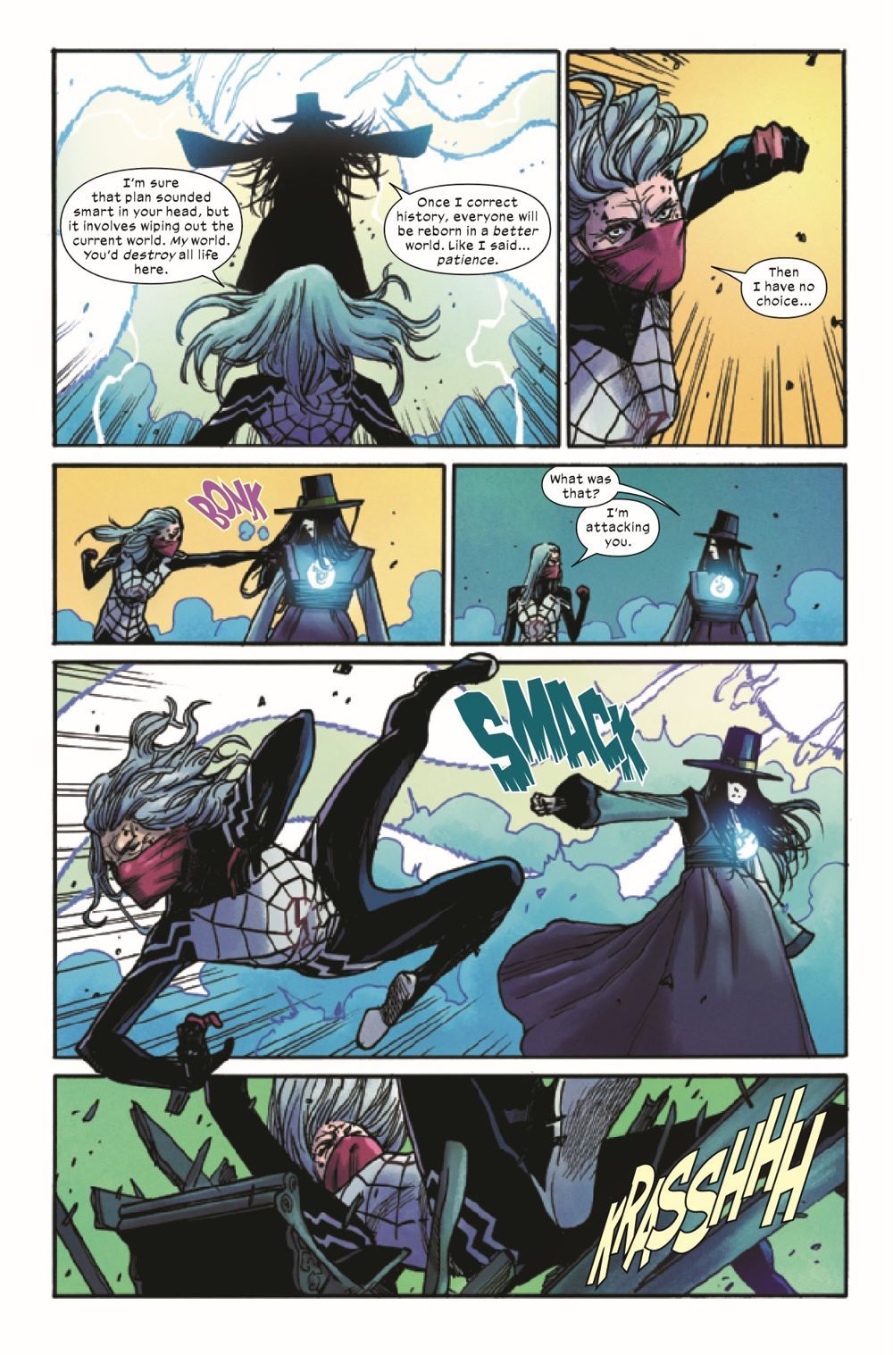 TIME'S UP! Silk has tried and failed to stop an evil witch from terrorizing New York. Now the witch is putting her grand plan into motion. What IS the witch's plan? And what'll happen to the city - and the world - if Silk is too late?!