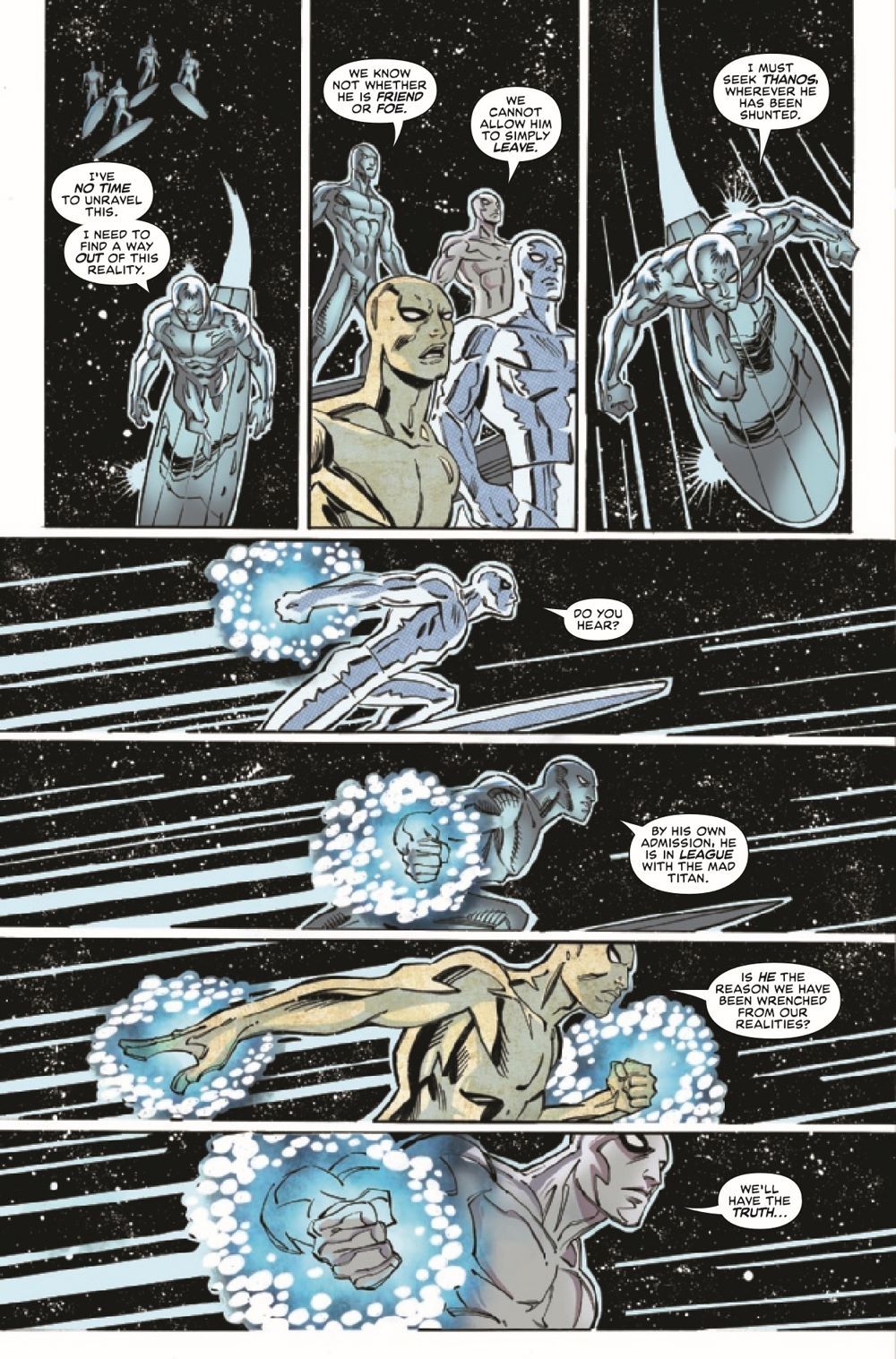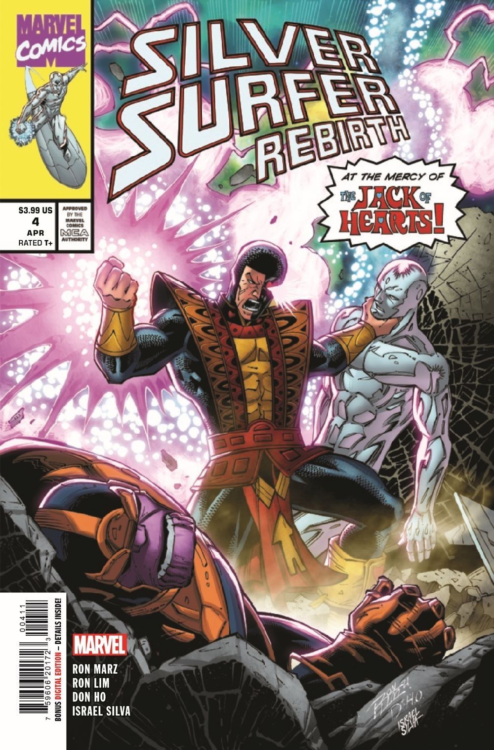 JACK'S BACK! Surfer and Thanos are getting closer to retrieving the Reality Gem… …but not if Jack of Hearts has anything to say about it! But who…or what…is possessing Jack to attack his silver friend?!