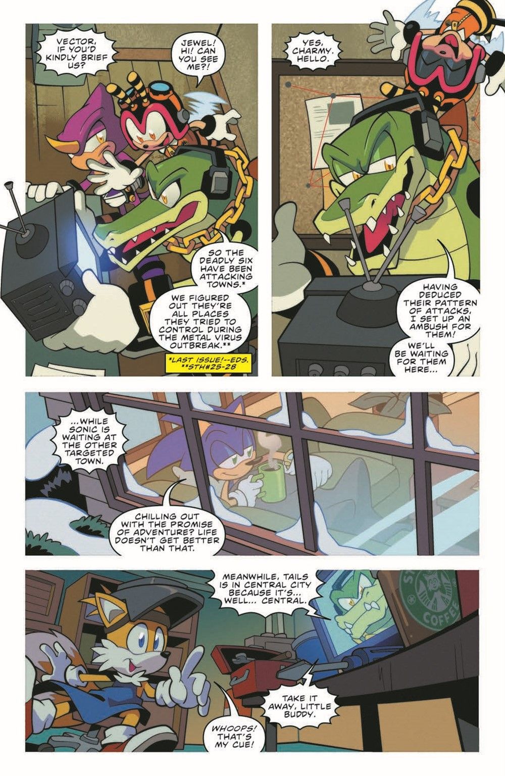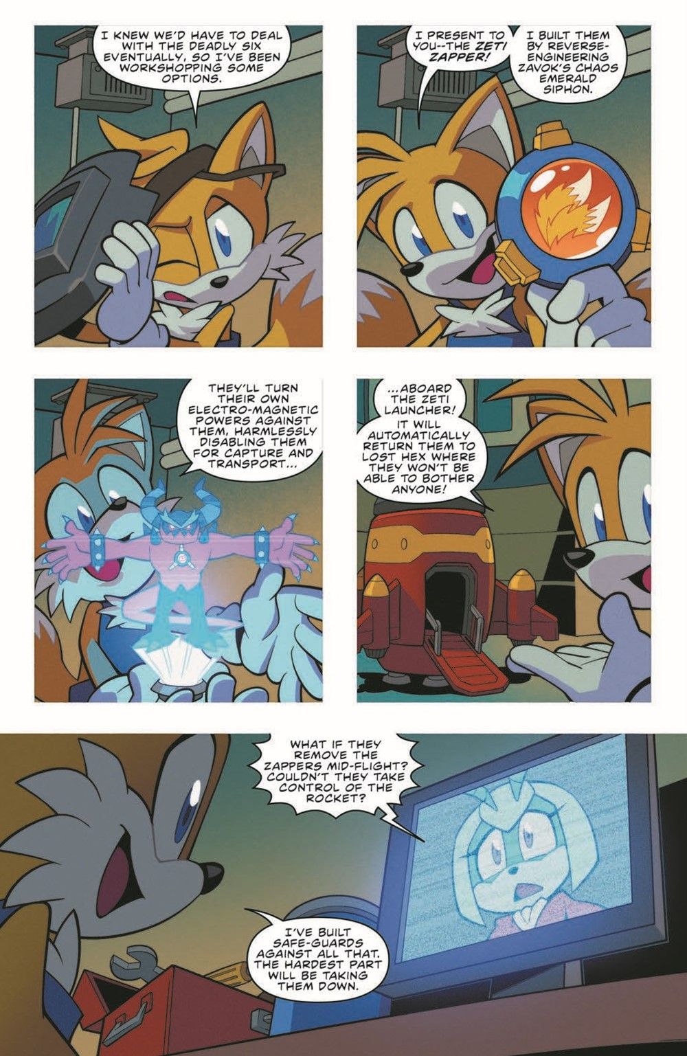 "Zeti Hunt," part two! Now that Zavok has his pack, it's time for them to make a big move. But Jewel the Beetle, newly appointed Restoration leader, has called on Sonic, Tails, and the Chaotix to run interference. Will they be able to stop the Zeti and make it home in time for spaghetti!?