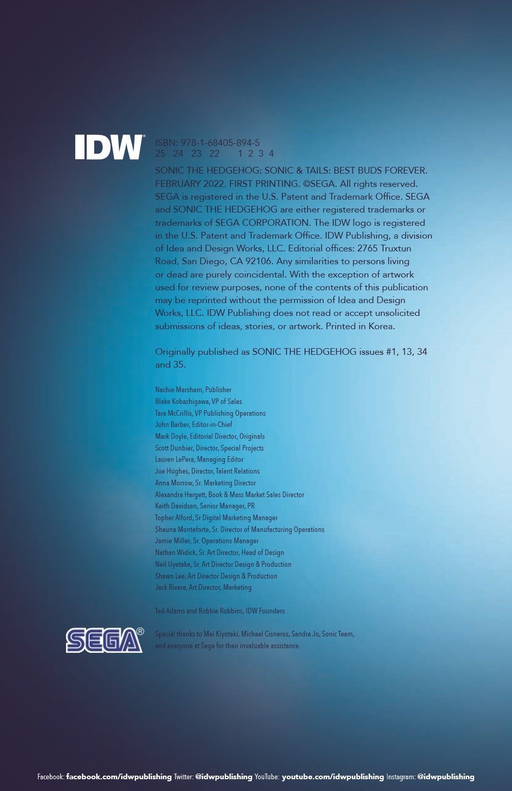 And finally, Tails and Sonic explore an abandoned Dr. Eggman base, but they're not alone! Can they trust the intruder? No worries. If years of friendship has proven anything, it's that they'll be fine as long as they've got each other! Collects Sonic the Hedgehog issues #1, 13, 34, and 35.