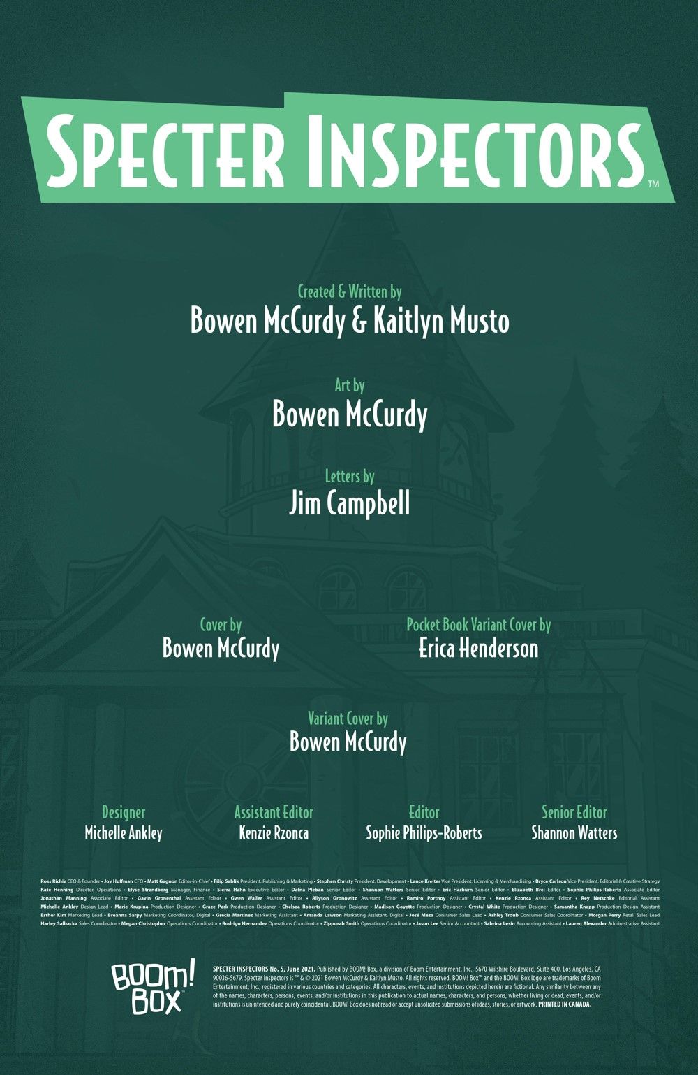FINAL ISSUE. Thanks to demons and ghosts, Cape Grace is living up to its reputation as the most haunted town in the USA. But now Gus, Ko, Astrid, and Noa are beginning to suspect local clergyman, Father Lucas Von Brandt, and his congregation may not be what they claim to be. Can the Specter Inspectors save Cape Grace from itself… without making the ultimate sacrifice?
