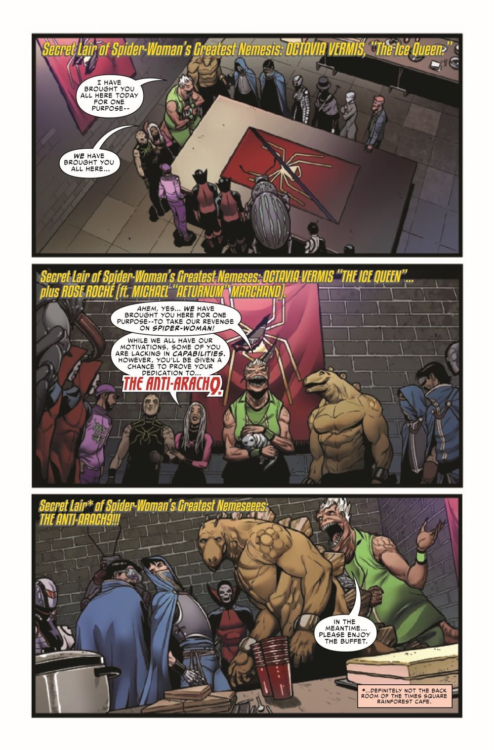 ENTER…THE ANTI-ARACHNINE! Spider-Woman has made a lot of enemies in her time… …and that's about to come back to bite her in a big way. What's worse than a Sinister Six? THE ANTI-ARACHNINE!